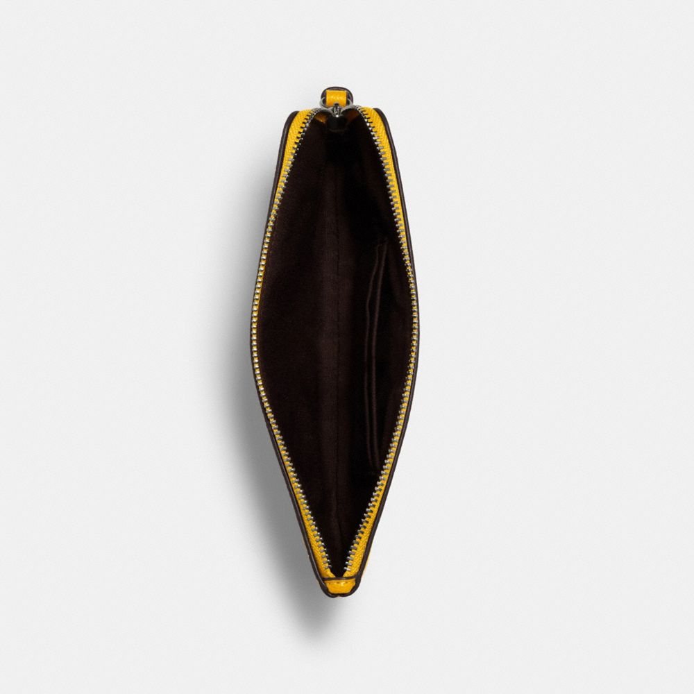 Crossgrain leather| Two credit card slots| Zip closure, fabric lining| Wrist strap attached| 7 3/4" (L) x 4 3/4" (H) x 1/2" (W)