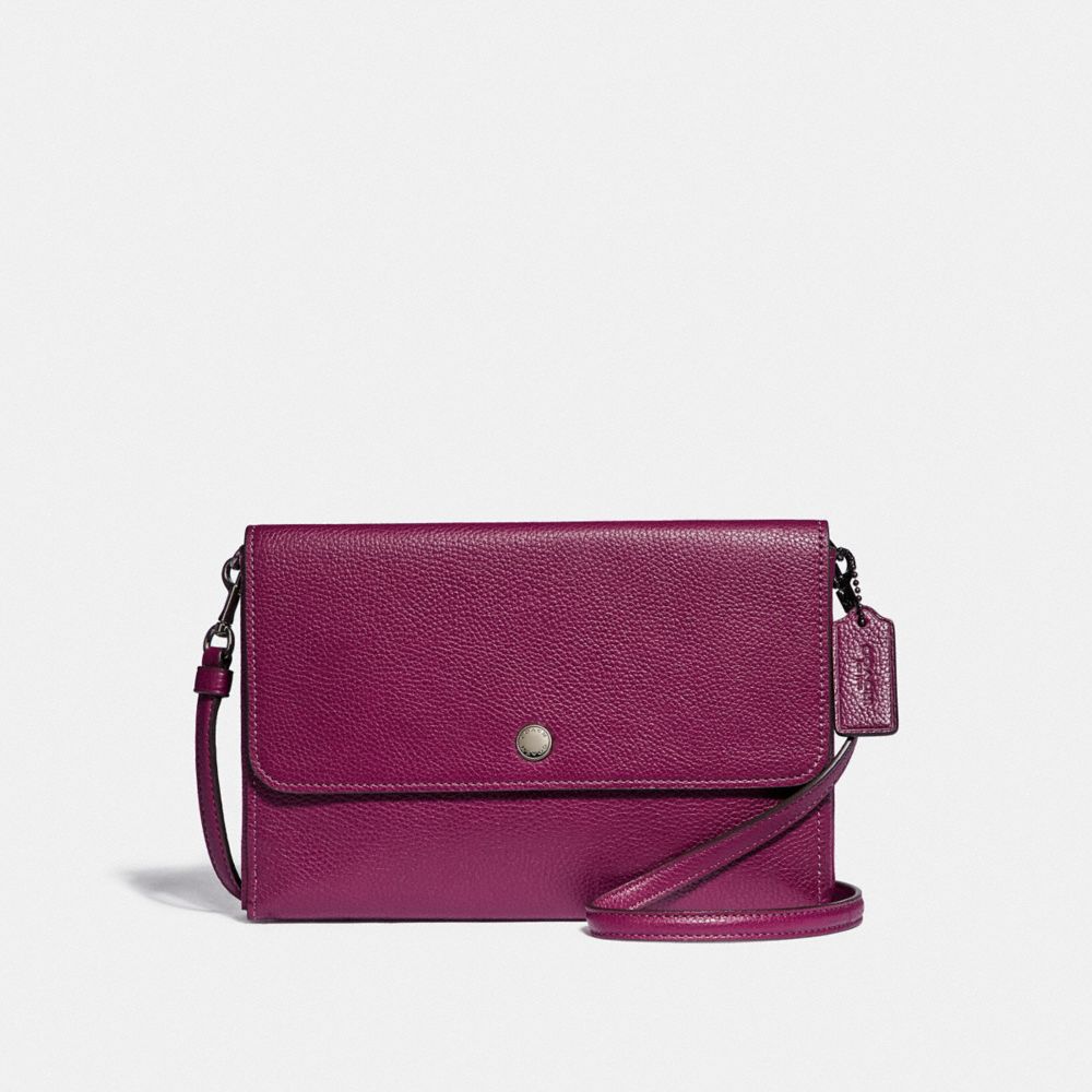 Polished pebble leather| Six credit card slots| Inside multifunction pocket| Double zip and snap closures| Detachable strap with 22" drop for shoulder or crossbody wear| Instantly change the look of your bag with an interchangeable strap.| 7 1/2" (L) x 4 3/4" (H)