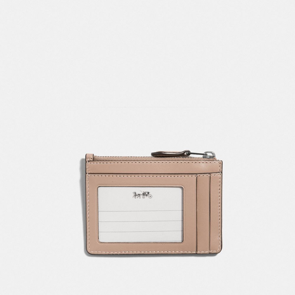 Signature refined calf leather| Credit card slot and ID window| Zip-top closure, fabric lining| Attached split key ring| 4 1/4" (L) x 3" (H)Style No. 39715