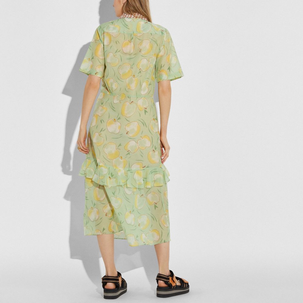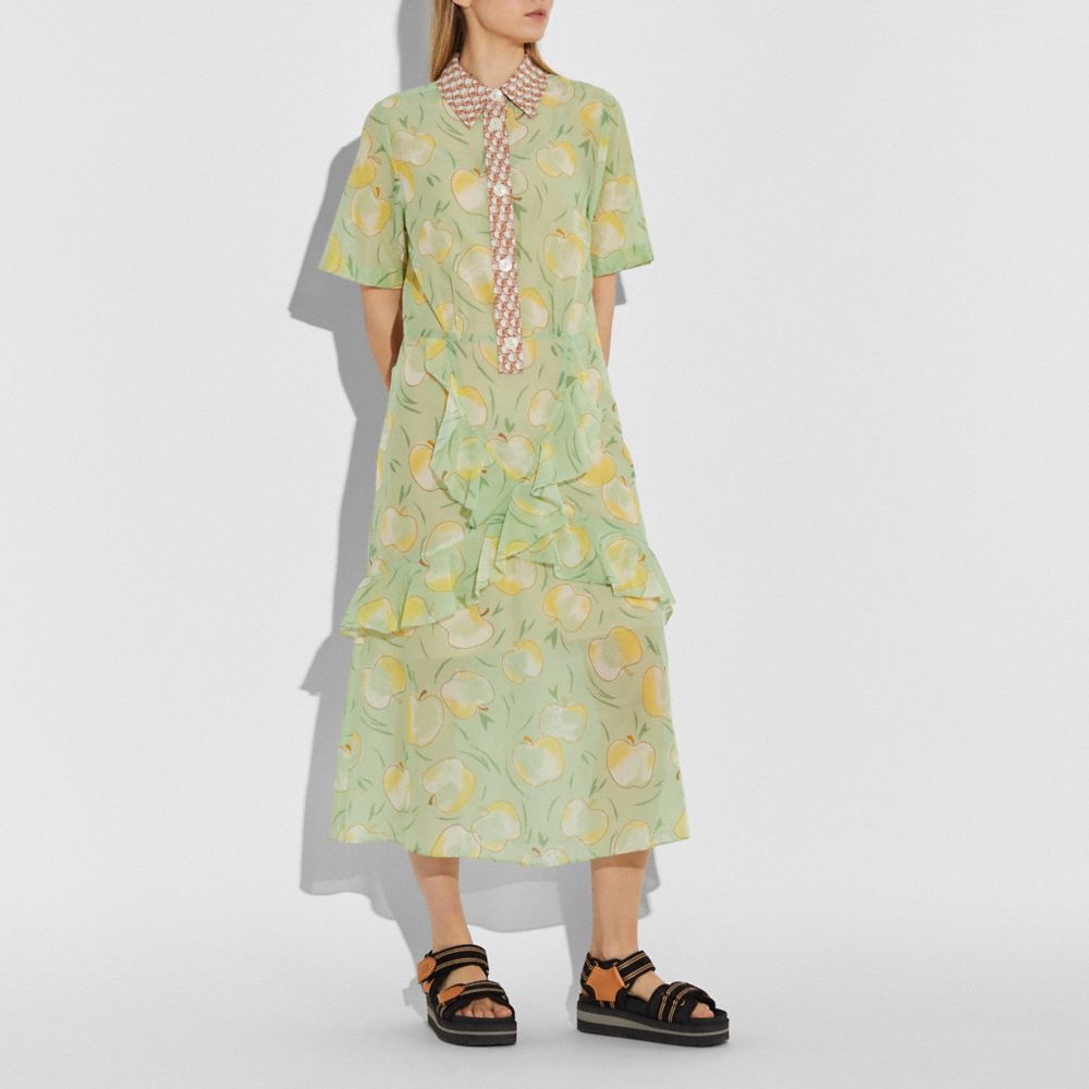APPLE PRINT LONG RUFFLE SHIRT DRESS