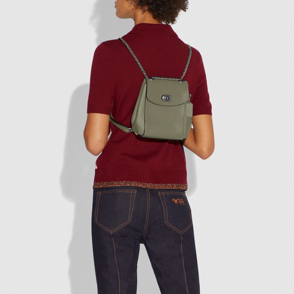 Refined calf leather| Inside multifunction pocket| Turnlock closure, fabric lining| Outside zip pocket| Adjustable straps convert bag to a shoulder bag from a backpack| 6 3/4" (L) x 7 1/2" (H) x 3 1/2" (W)| Also available in other sizes