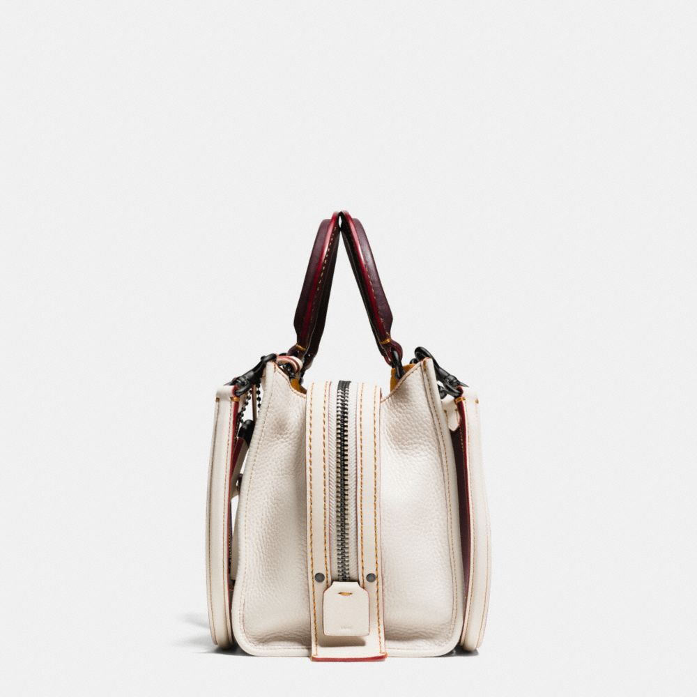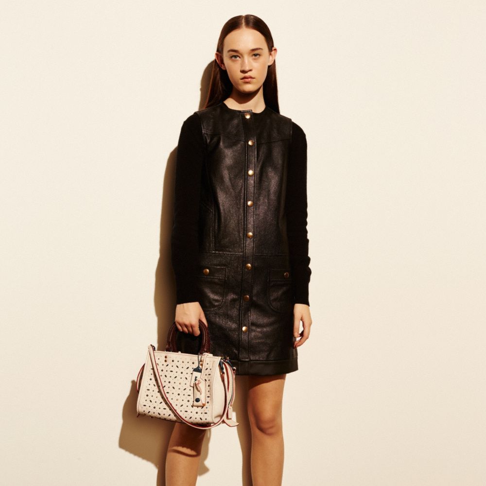 Natural pebble leather| Inside zip and snap pockets| Zip closure, fabric and suede lining| Two open compartments| Handles with 3 1/2" drop| Detachable straps with 10 1/2" drop for shoulder wear| Shoulder straps can be linked together for crossbody wear| 9 3/4" (L) x 7 1/2" (H) x 5 1/2" (W)