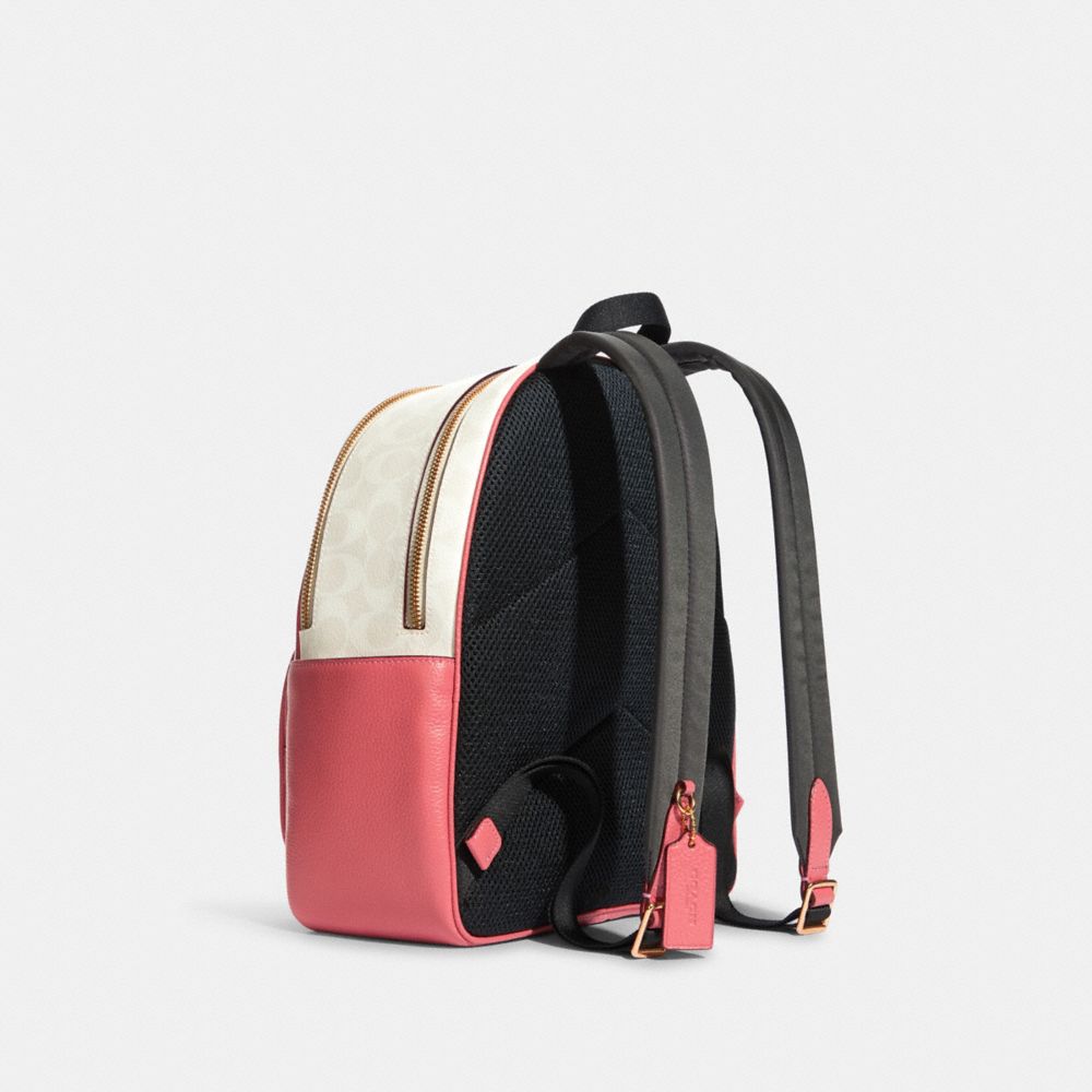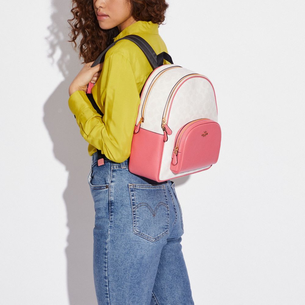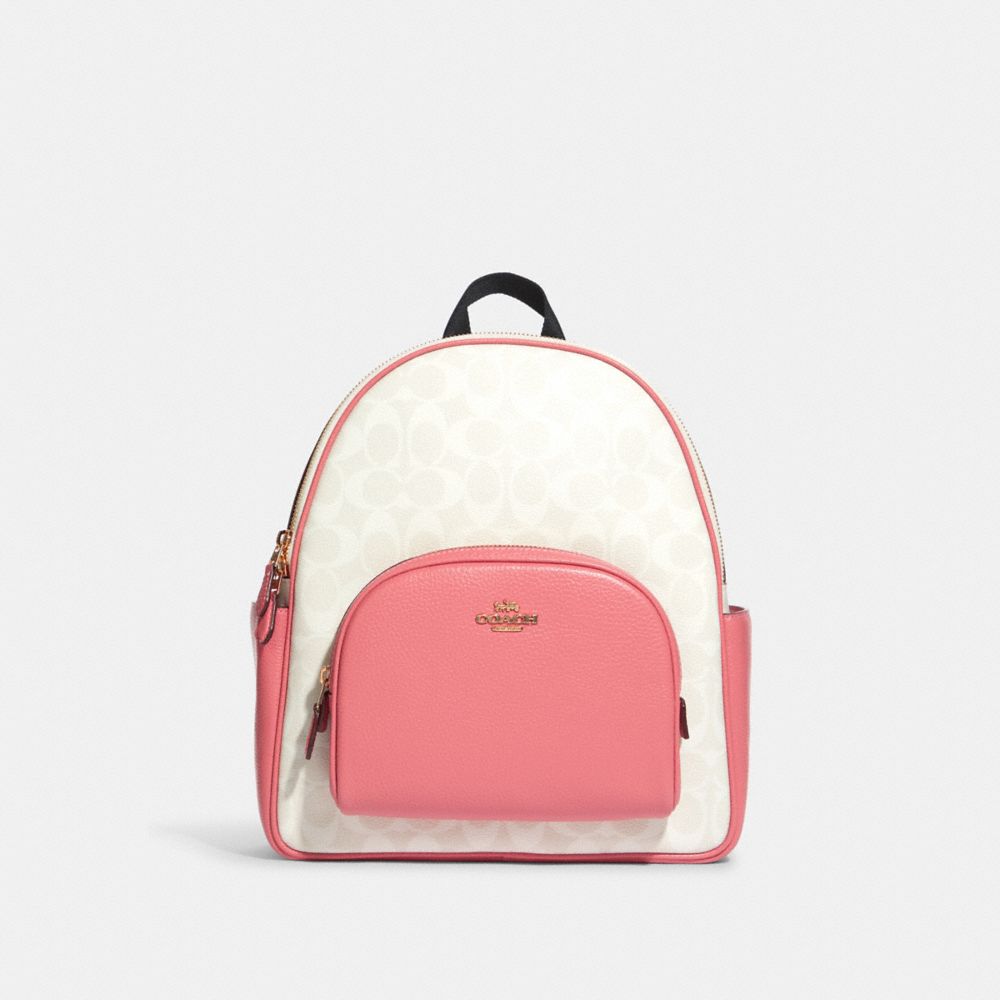 Signature coated canvas and refined pebble leather| Inside zip and multifunction pockets| Double zip closure, fabric lining| Handle with 2 1/4" drop| Outside zip pocket| Adjustable shoulder straps| 10 3/4" (L) x 12 1/2" (H) x 4 3/4" (W)Style No. 5671