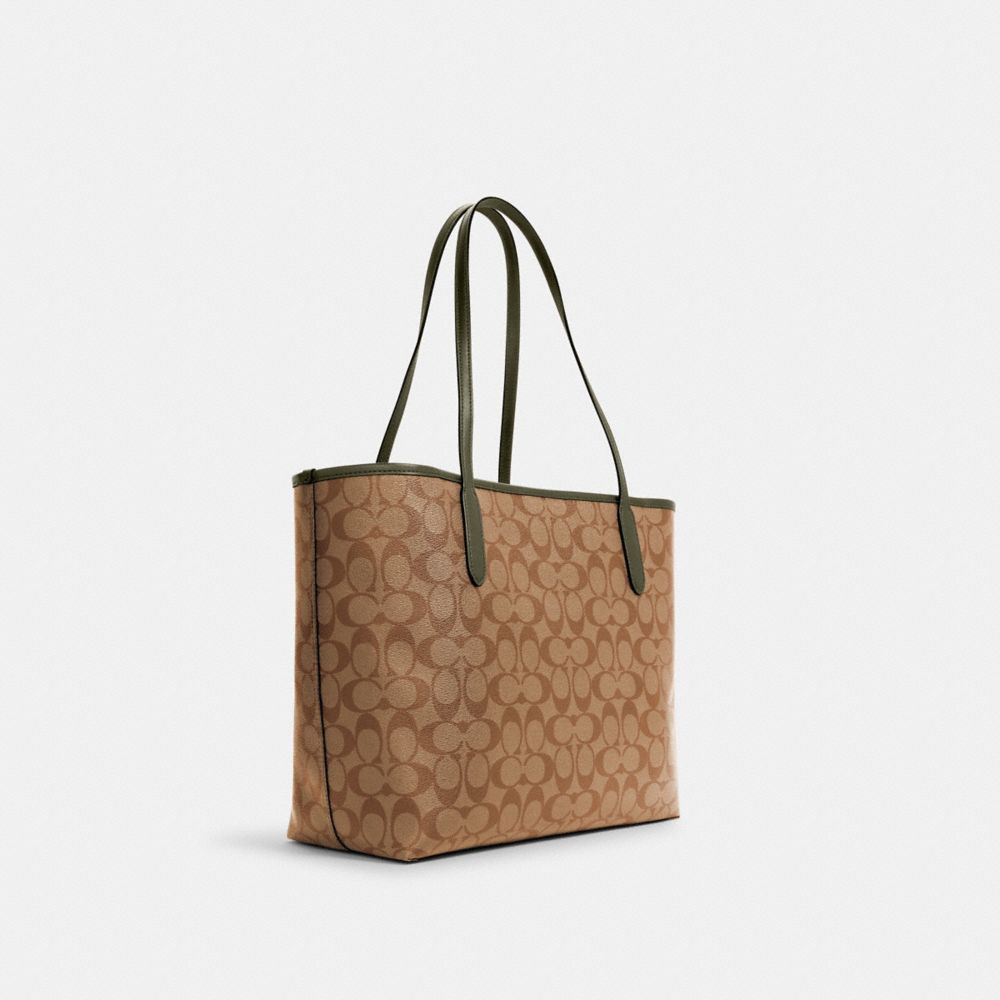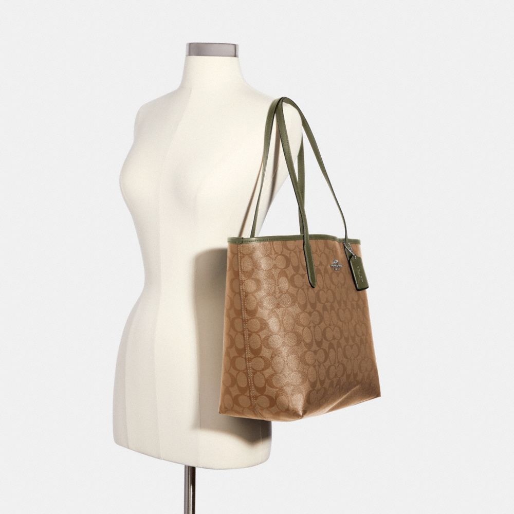 Signature coated canvas with smooth leather details| Inside zip pocket| Dogleash clip closure| Handles with 9 1/2" drop| 13" (L) x 11 1/2" (H) x 6 1/4" (W)