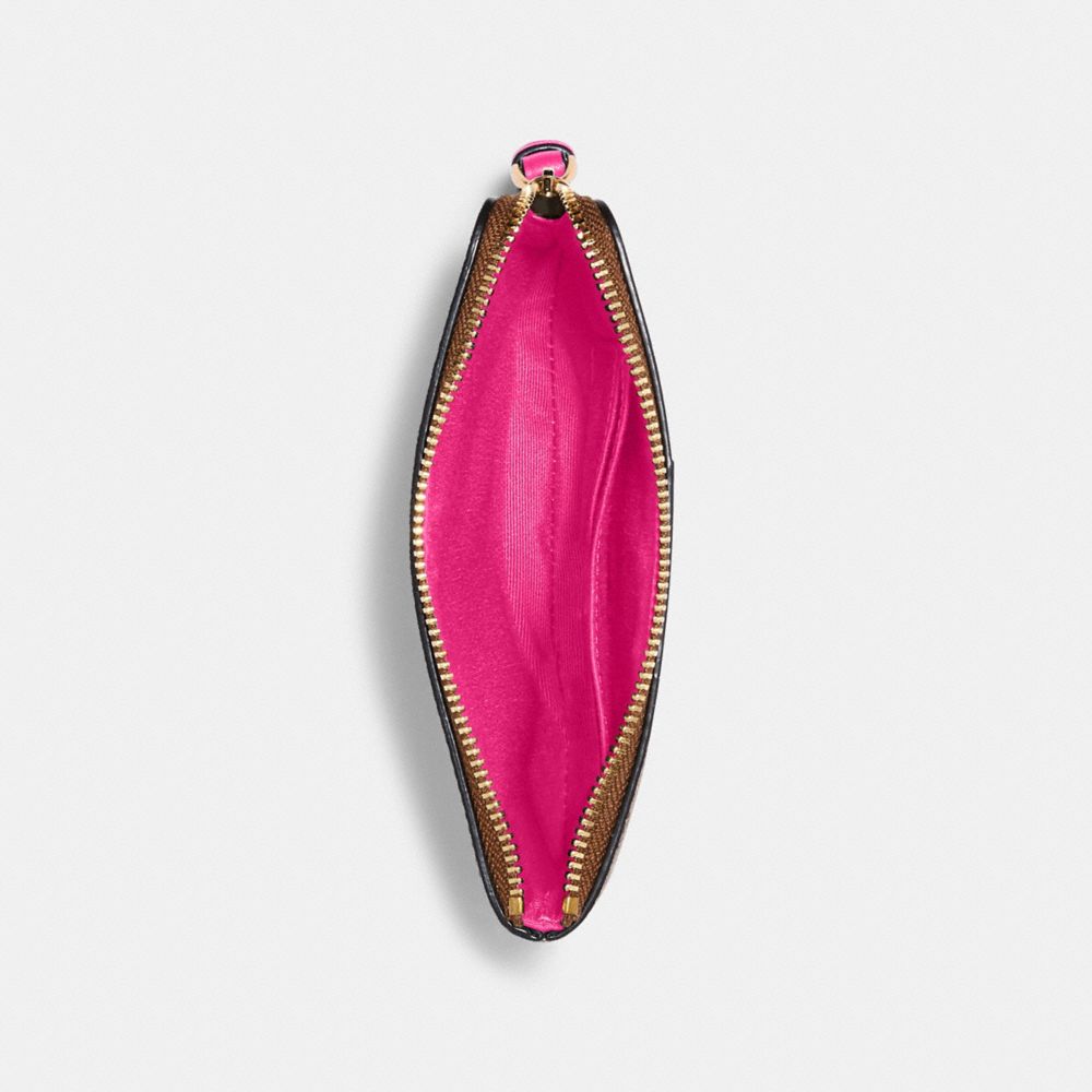 Signature coated canvas with crossgrain leather details| Two credit card slots| Zip-top closure, fabric lining| Wrist strap attached| 6 1/4" (L) x 4" (H) x 1/2" (W)