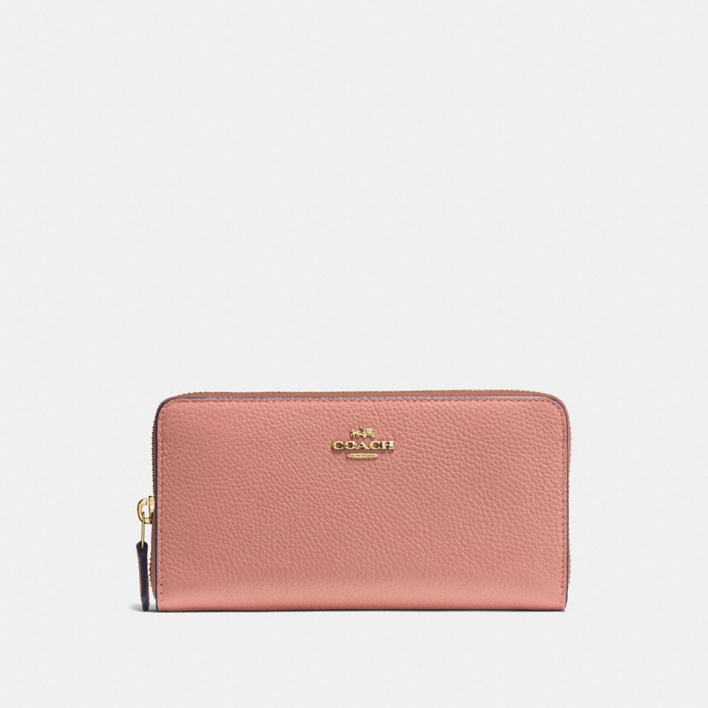 Polished pebble leather| 12 credit card slots| Full-length bill compartments| Zip coin pocket| Zip-around closure| Outside open pocket| 7 1/2" (L) x 4" (H) x 3/4" (W)| Fits all phone sizes up to an iPhone X and Samsung S7 Edge
