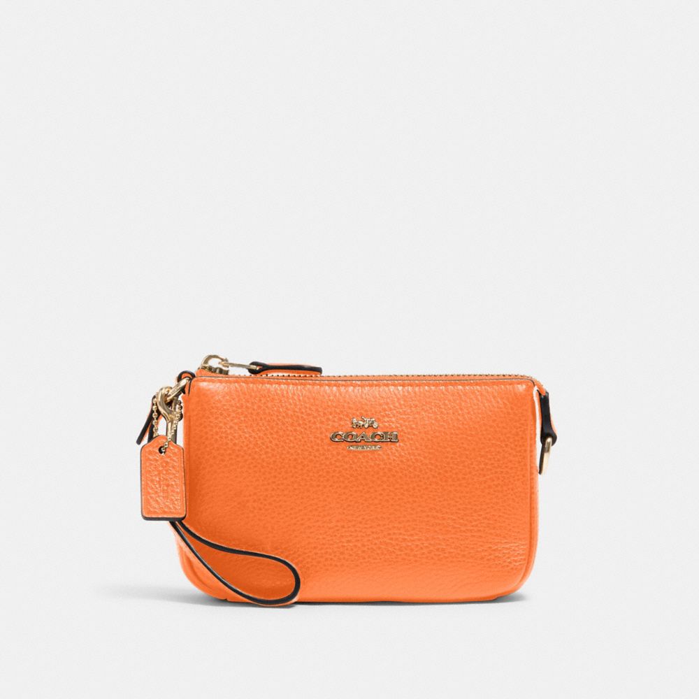 Refined pebble leather| Two credit card slots| Zip-top closure, fabric lining| Handle with 4 1/2" drop| 6" (L) x 4" (H) x 1 1/2" (W)Style No. 6386