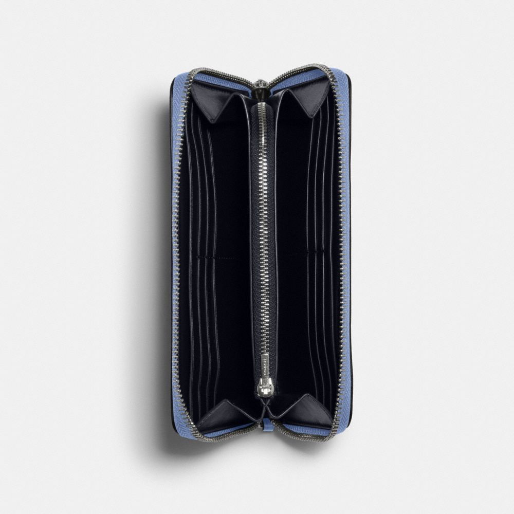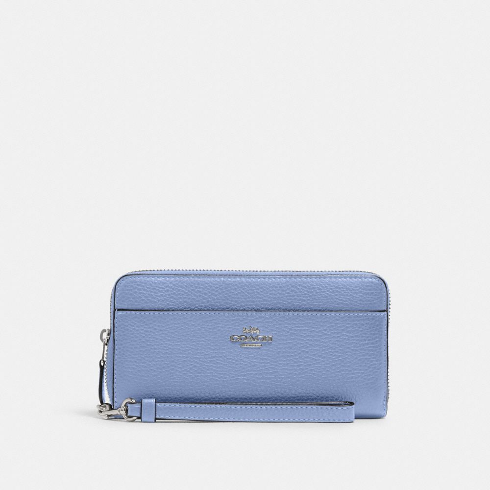 Refined pebble leather| 12 credit card slots| Full-length bill compartments| Zip coin pocket| Zip-around closure| Outside open pocket| Detachable wrist strap| 7 1/2" (L) x 4" (H) x 3/4" (W)