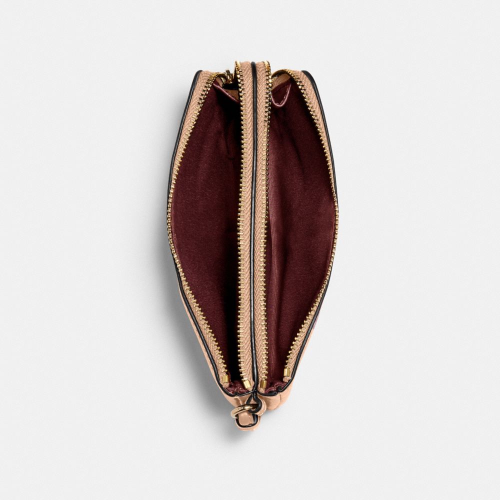 Refined pebble leather| Two credit card slots| Double zip closure, fabric lining| Wrist strap attached| 6 1/2" (L) x 3 3/4" (H) x 1 3/4" (W)| Fits an iPhone or Android