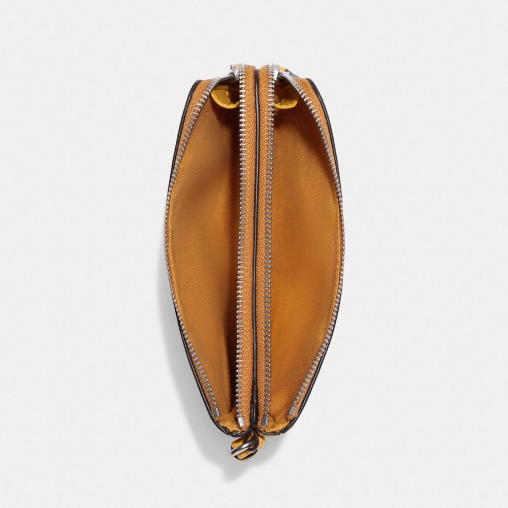 Refined pebble leather| Two credit card slots| Double zip closure, fabric lining| Wrist strap attached| 6 1/2" (L) x 3 3/4" (H) x 1 3/4" (W)Style No. 6649