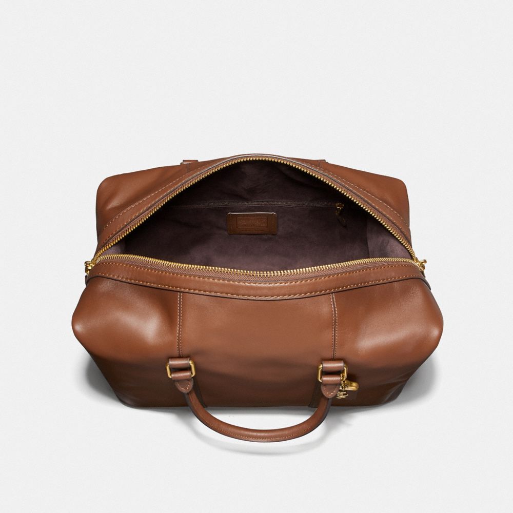 Glovetanned leather| Inside zip and multifunction pockets| Full-length zip closure, fabric lining| Leather handles with 7 1/2" drop| Detachable nylon strap with 25" drop for shoulder or crossbody wear| Padlock and luggage tag included| 17 1/4" (L) x 11" (H) x 9" (W)| Complies with TSA size regulations for carry-on luggage