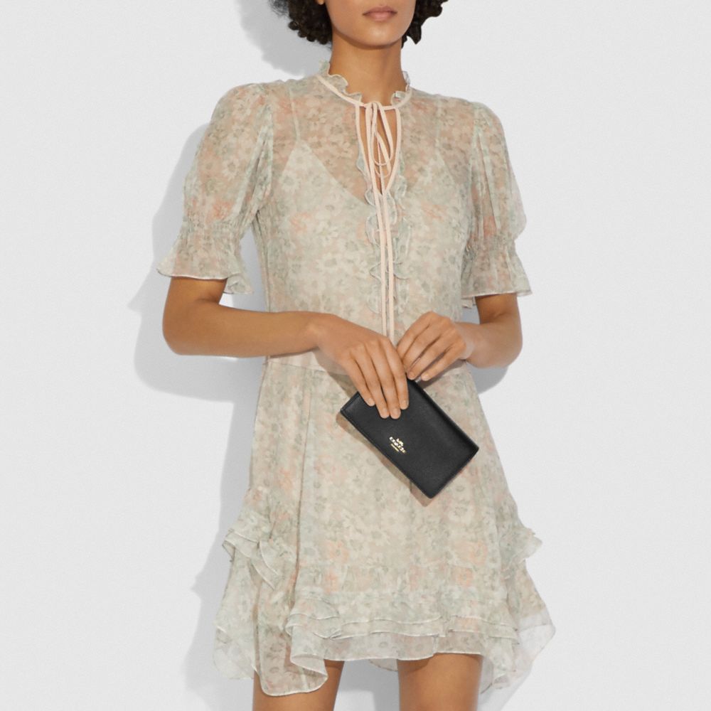 Polished pebble leather| Two credit card slots| Inside zip pocket| Snap closure, leather lining| Adjustable strap for wear at waist| Detachable chain strap with 22" drop for shoulder or crossbody wear| 7 1/4" (L) x 4" (H) x 1 1/4" (W)