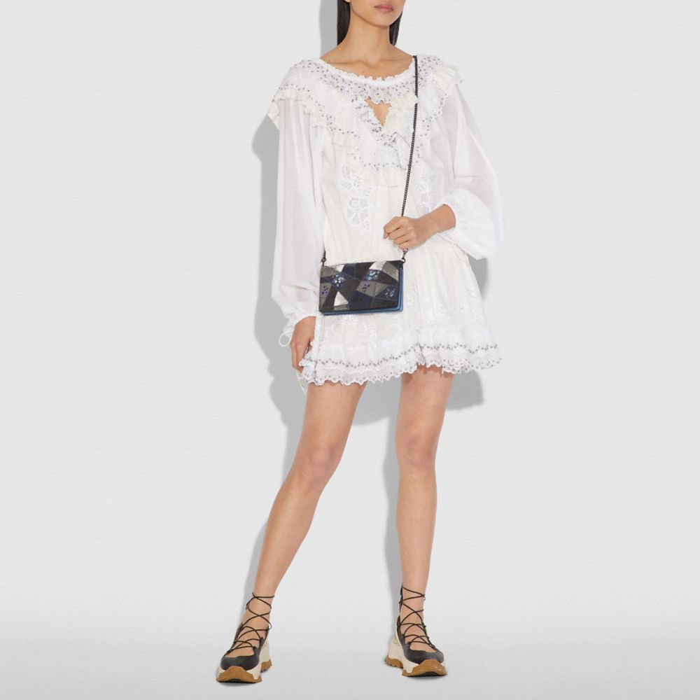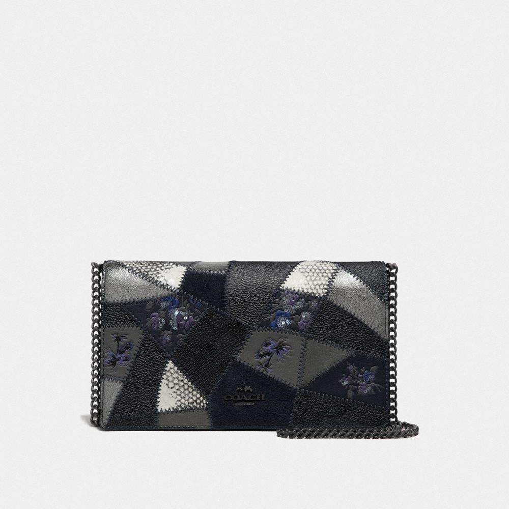 CALLIE FOLDOVER CHAIN CLUTCH WITH SIGNATURE PATCHWORK