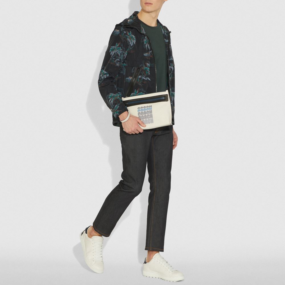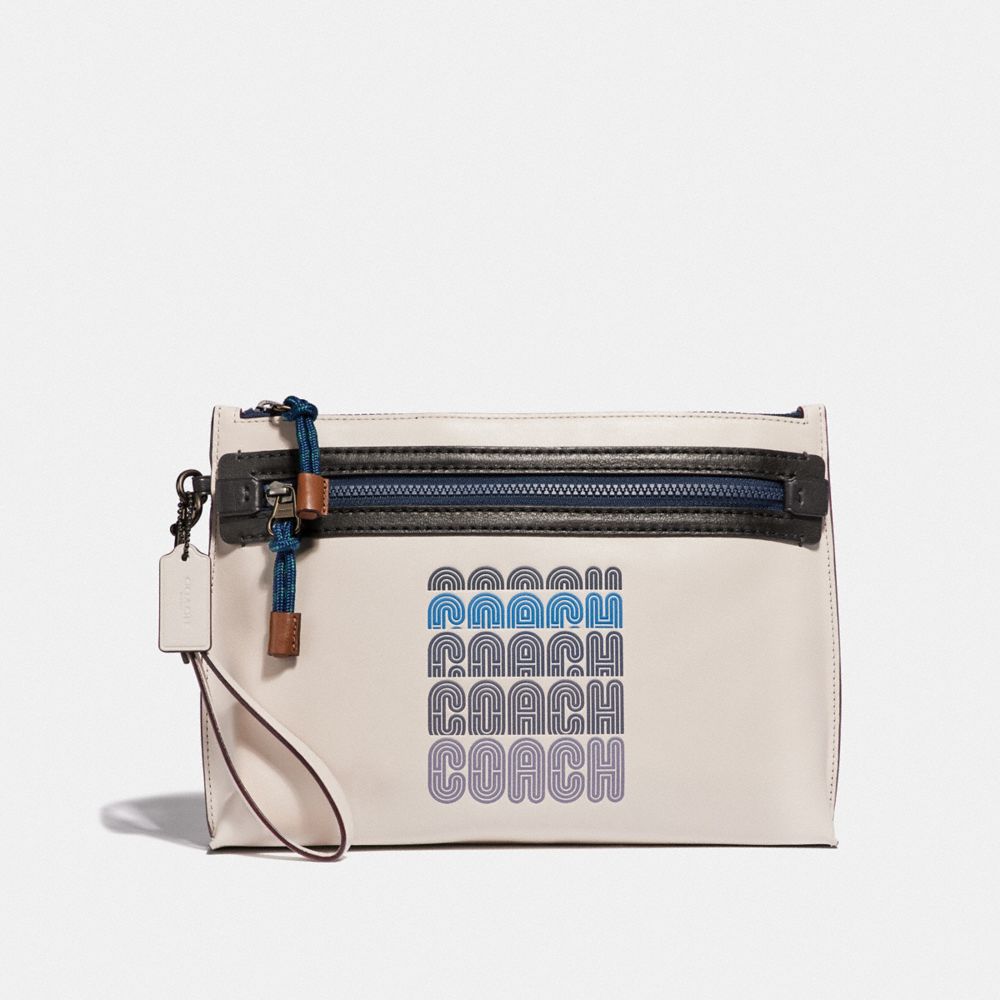 Sport calf leather| Inside slip pocket| Zip-top closure, fabric lining| Outside zip pocket| Detachable wrist strap| 11 1/4" (L) x 8" (H) x 2 1/4" (W)