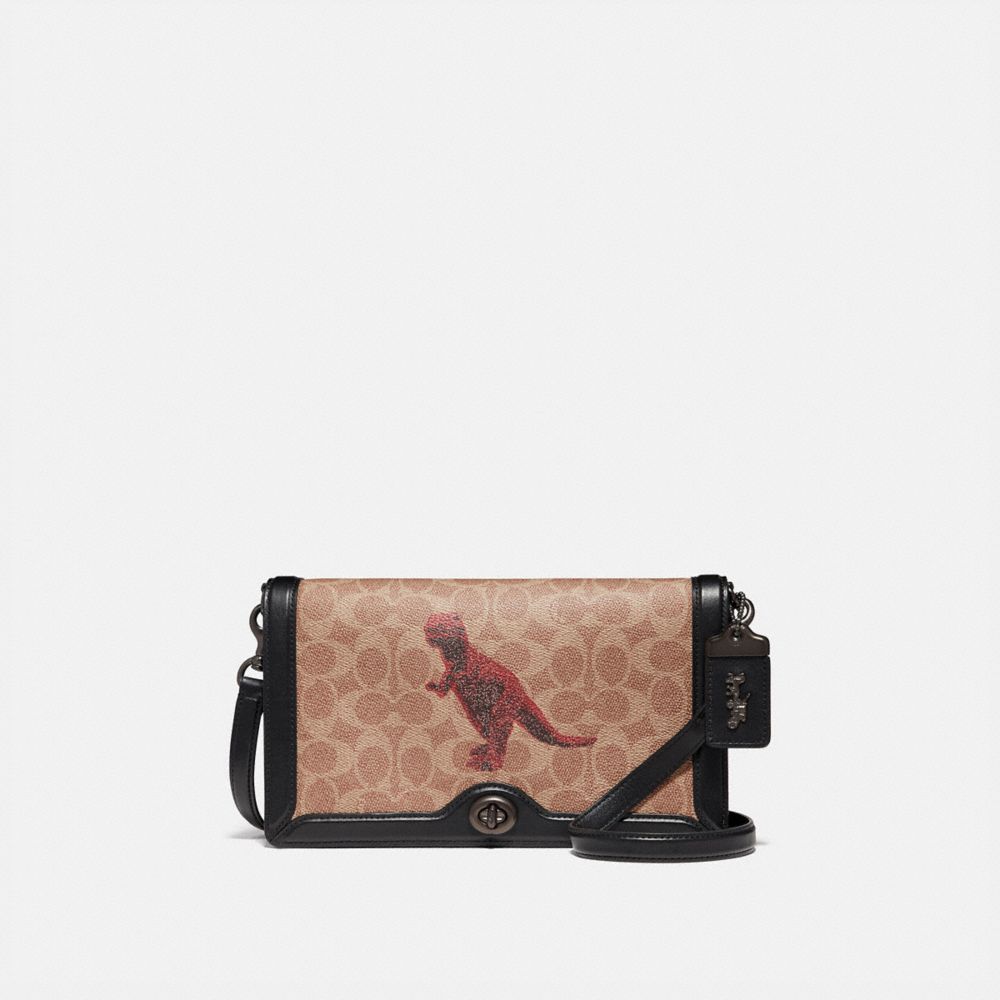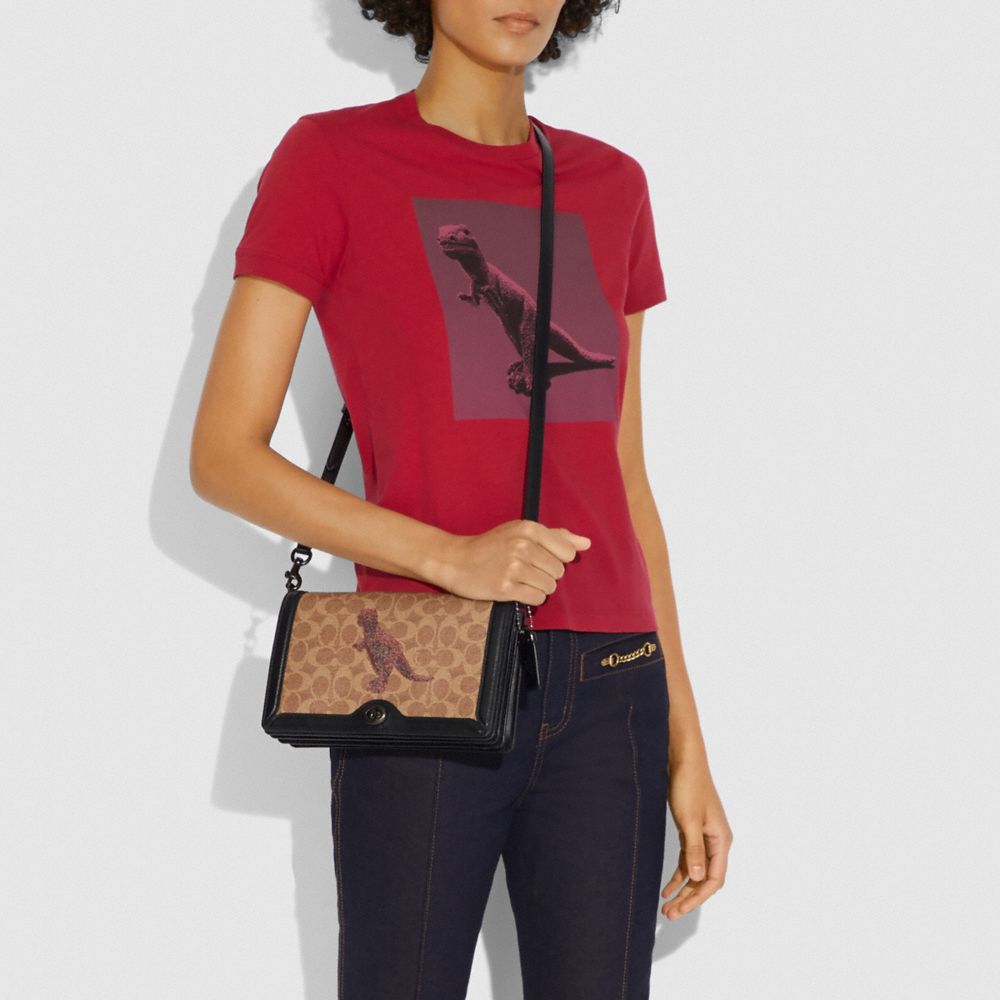 Signature coated canvas and refined calf leather| One credit card slot| Inside zip and open pockets| Turnlock closure, fabric lining| Detachable strap with 22" drop for shoulder or crossbody wear| Instantly change the look of your bag with an interchangeable strap.| 9 3/4" (L) x 6" (H) x 1 3/4" (W)