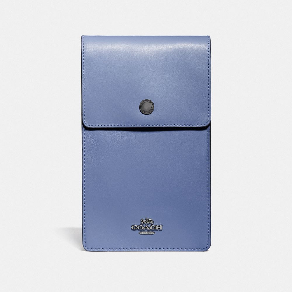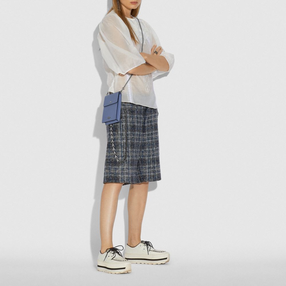 Refined calf leather| Snap closure| Four outside credit card slots| Detachable strap with 23" drop for shoulder or crossbody wear| 4 1/4" (L) x 7" (H) x 1 1/4" (W)