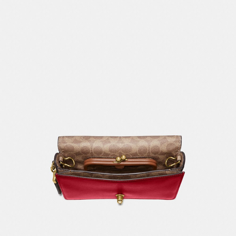 Signature coated canvas and glovetanned leather| Inside open and coin purse pockets| Turnlock closure, leather lining| Outside slip pocket| Detachable strap with 22" drop doubles up for three ways to wear: short or long on the shoulder or crossbody style| Instantly change the look of your bag with an interchangeable strap.| 9" (L) x 5" (H) x 2" (W)| Also available in other sizes