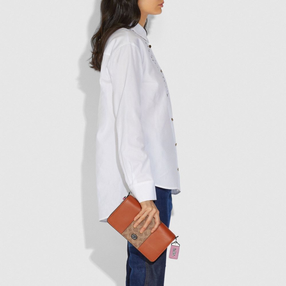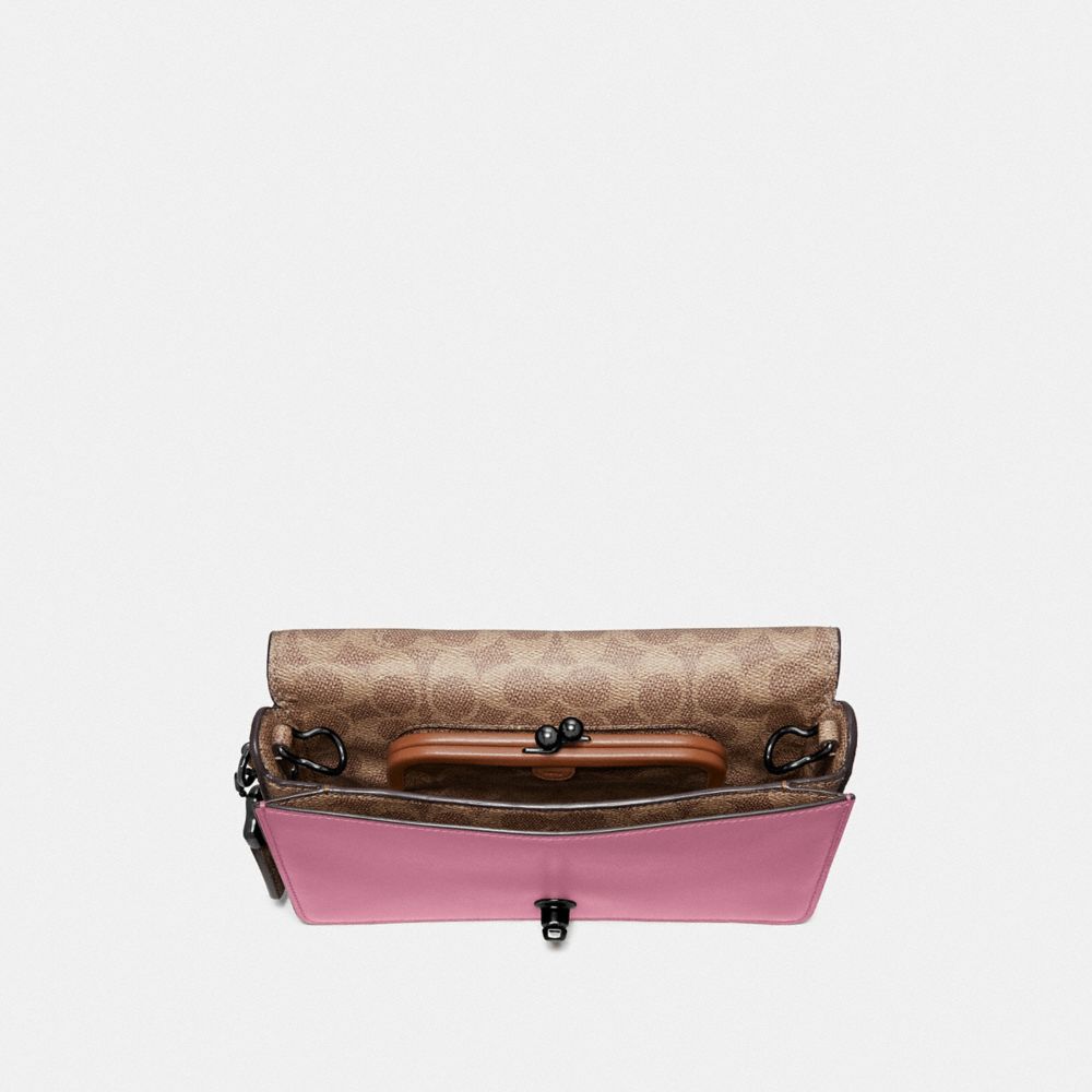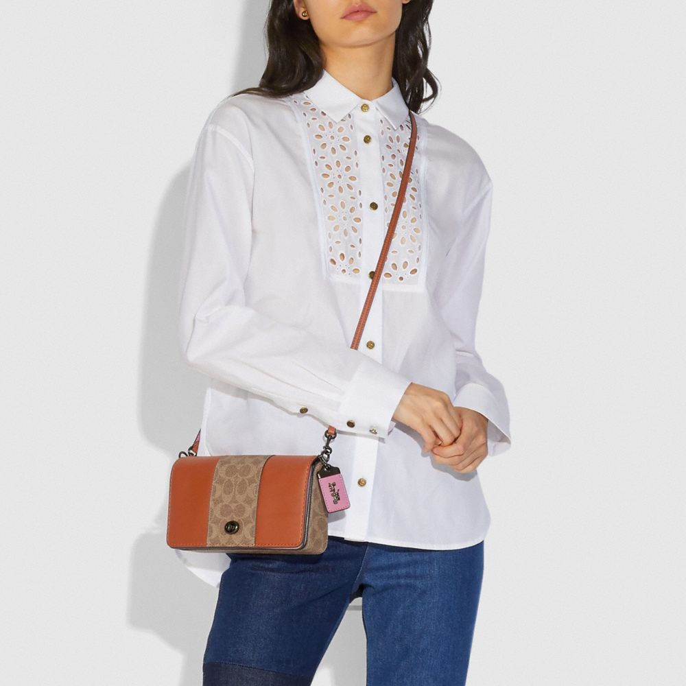 Signature coated canvas and glovetanned leather| Inside open and coin purse pockets| Turnlock closure, leather lining| Outside slip pocket| Detachable strap with 22" drop doubles up for three ways to wear: short or long on the shoulder or crossbody style| Instantly change the look of your bag with an interchangeable strap.| 9" (L) x 5" (H) x 2" (W)| Also available in other sizes