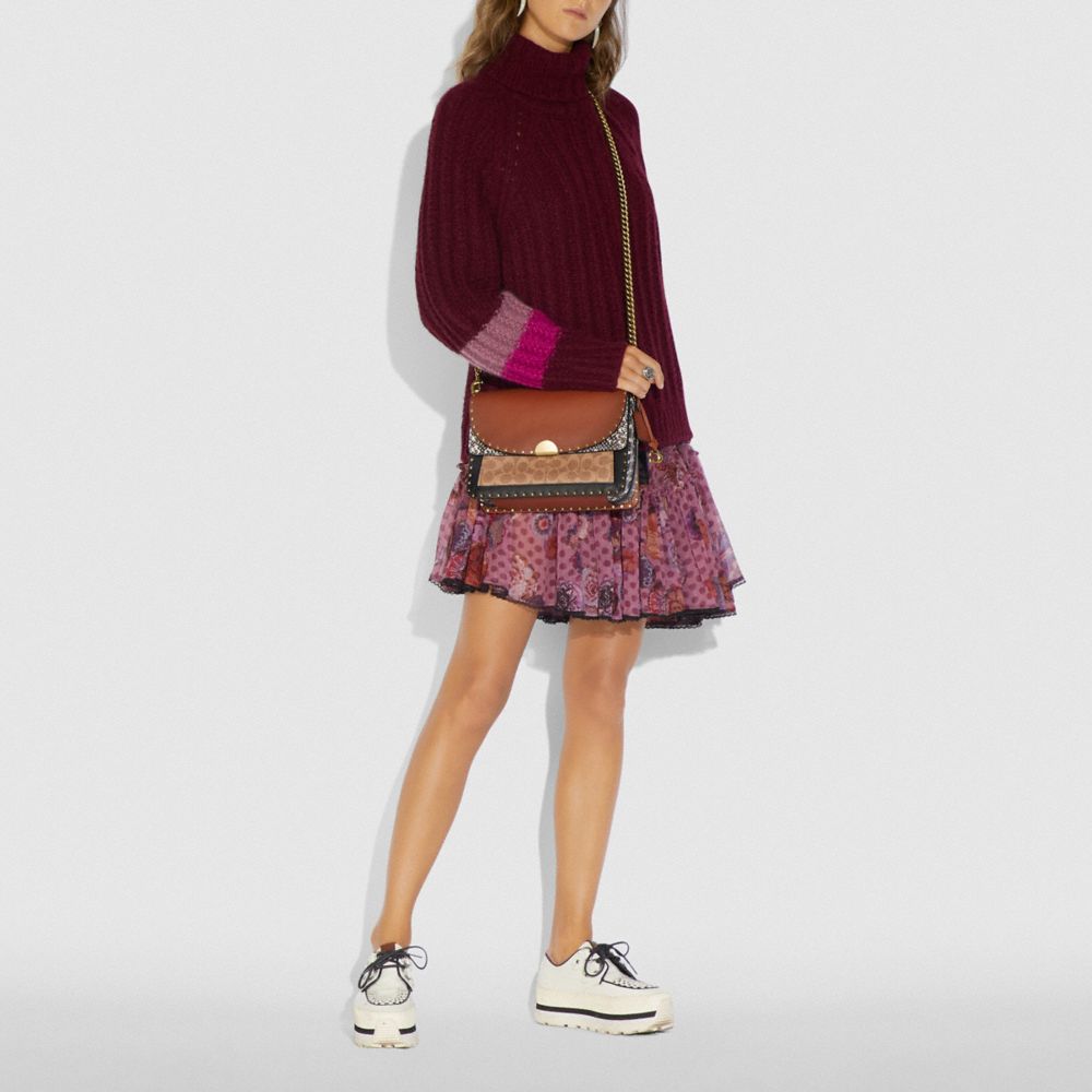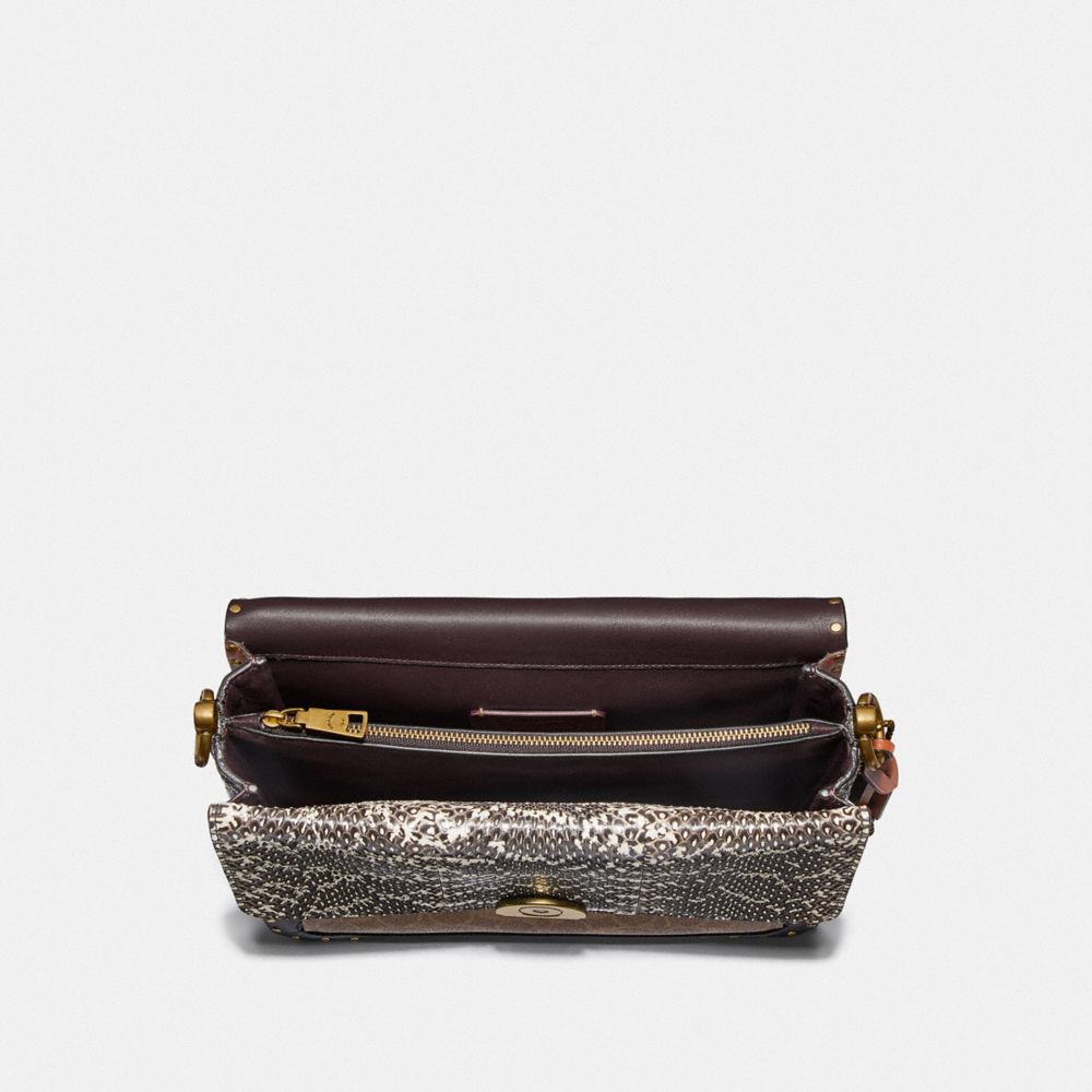 Signature coated canvas, glovetanned leather and genuine snakeskin| Inside zip and open pockets| Snap closure, leather lining| Detachable shoulder strap with 14" drop| Outside open pocket| Detachable long strap with 23" drop for shoulder and crossbody wear| 10 1/4" (L) x 7 1/2" (H) x 3 1/2" (W)