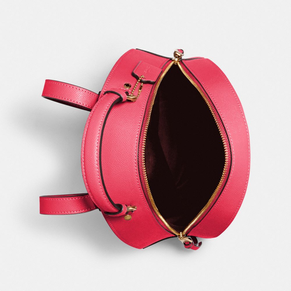 Crossgrain leather| Inside zip pocket| Zip closure, fabric lining| Top handle with 2" drop| Outside zip pocket| Adjustable shoulder straps| 10 1/2" (L) x 12 1/4" (H) x 3 3/4" (W)