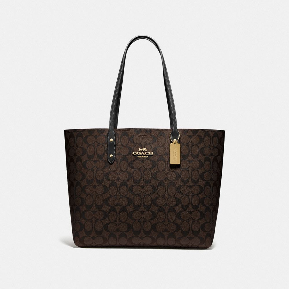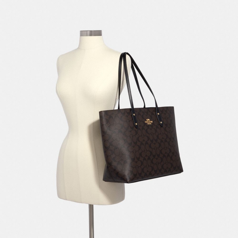Signature coated canvas with smooth leather details| Inside zip pocket| Snap closure| Handles with 8 3/4" drop| 12 1/4" (L) x 12 1/2" (H) x 4 3/4" (W)