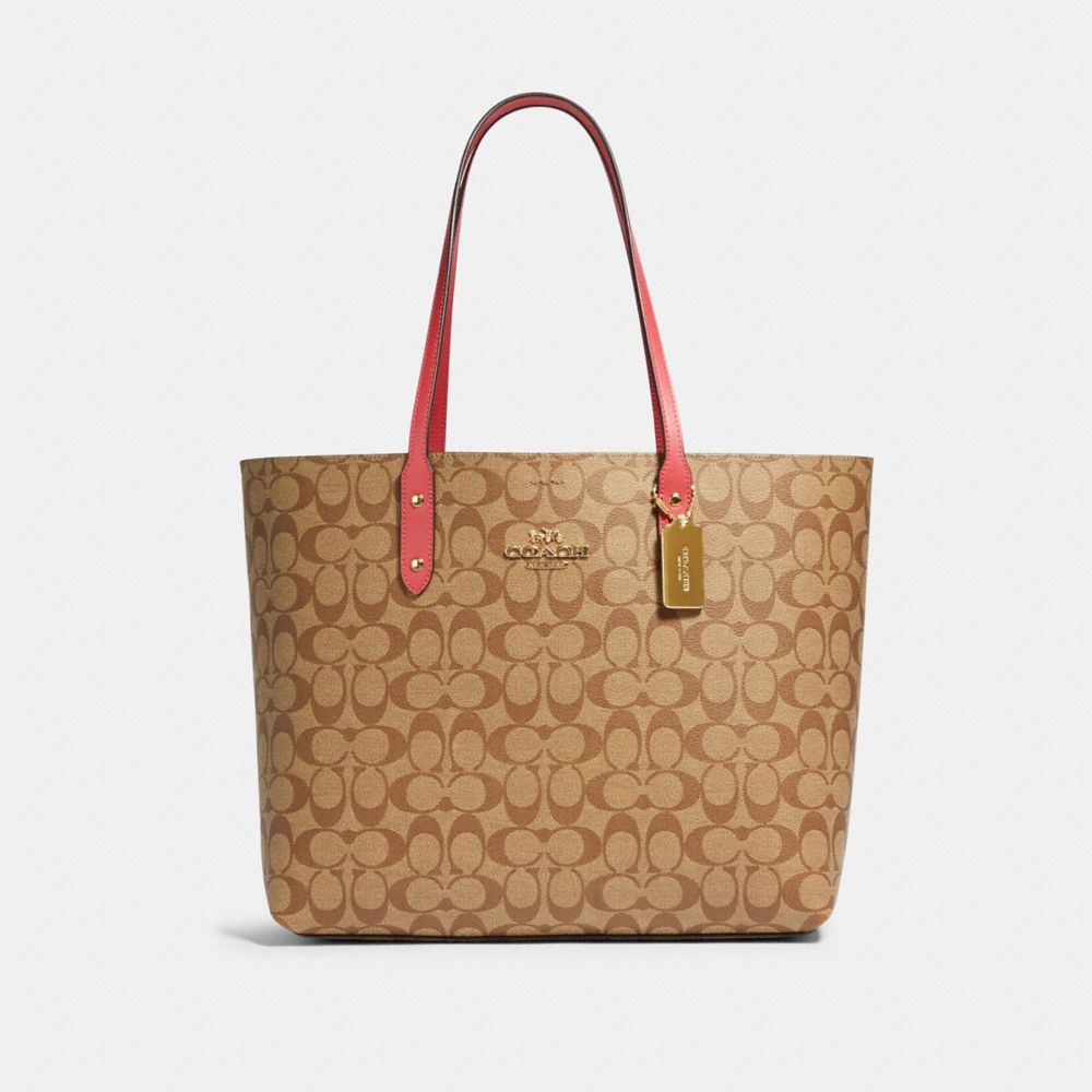 Signature coated canvas with smooth leather details| Inside zip pocket| Snap closure| Handles with 8 3/4" drop| 12 1/4" (L) x 12 1/2" (H) x 4 3/4" (W)
