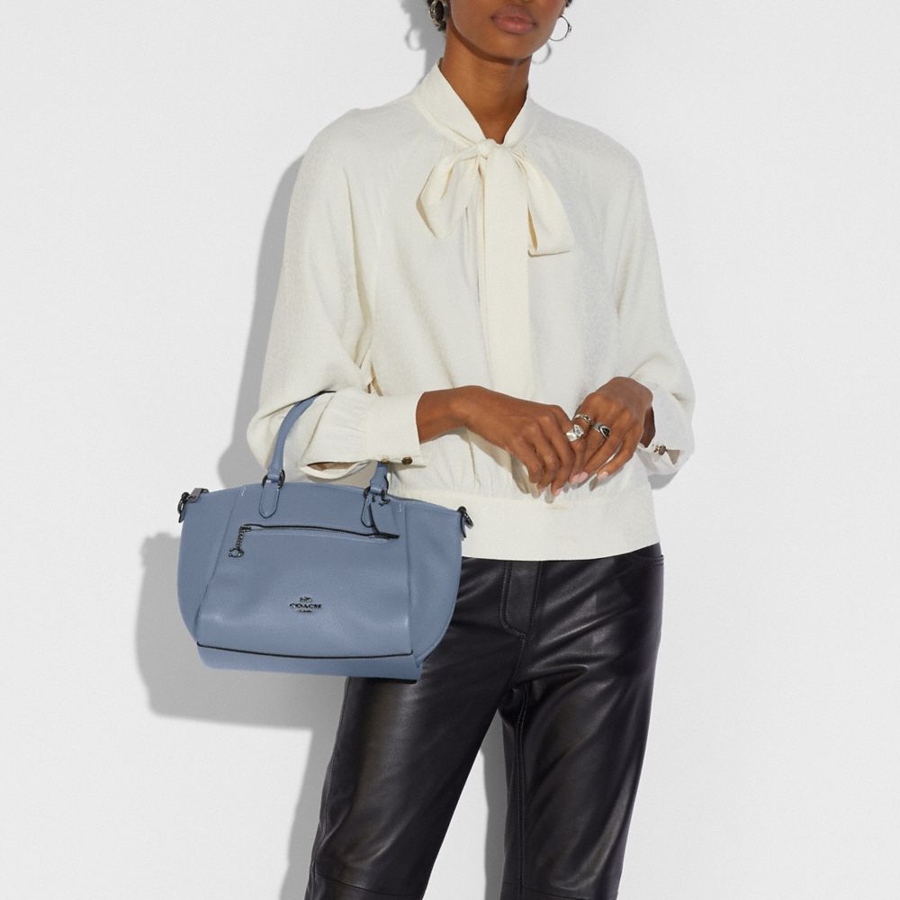 Polished pebble leather| Inside zip and snap pockets| Zip-top closure, fabric lining| Handles with 4 1/2" drop| Outside zip pocket| Detachable strap with 21 1/2" drop for shoulder or crossbody wear| Instantly change the look of your bag with an interchangeable strap.| 9 1/2" (L) x 8 1/4" (H) x 4 1/2" (W)| Also available in other sizes