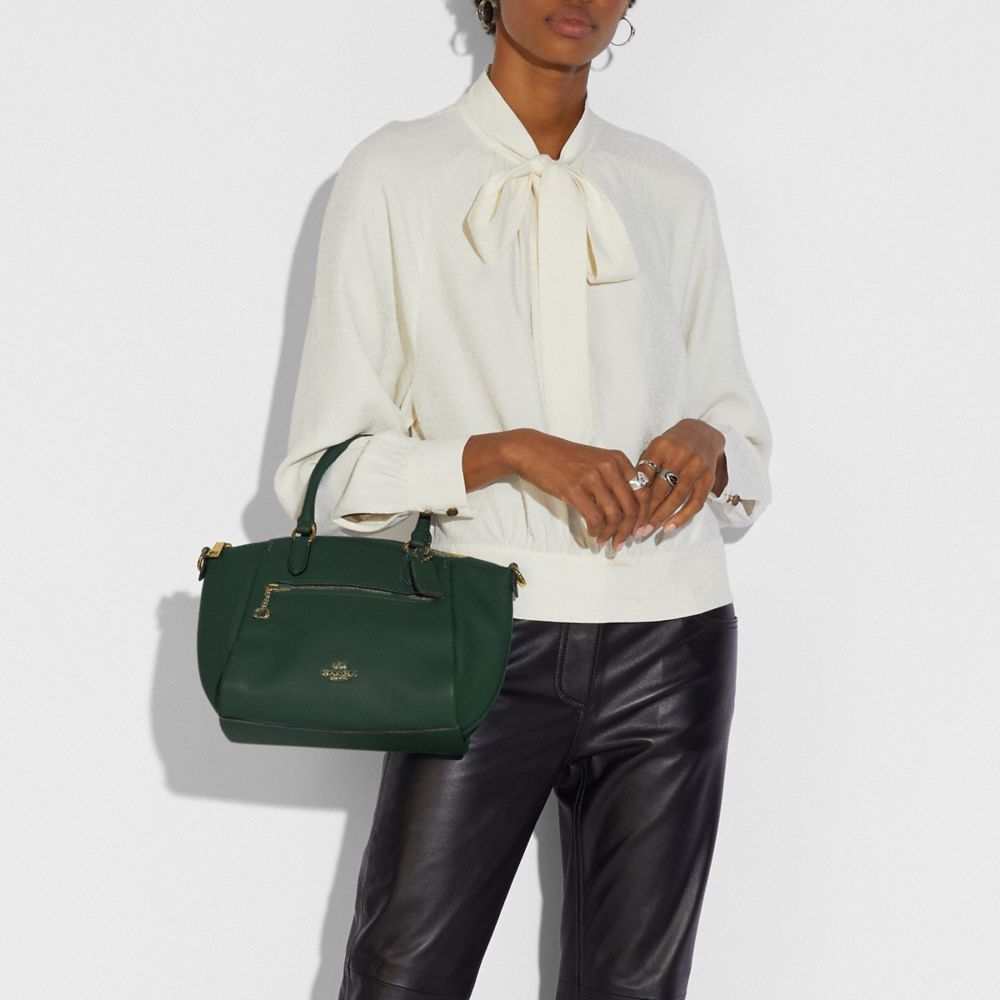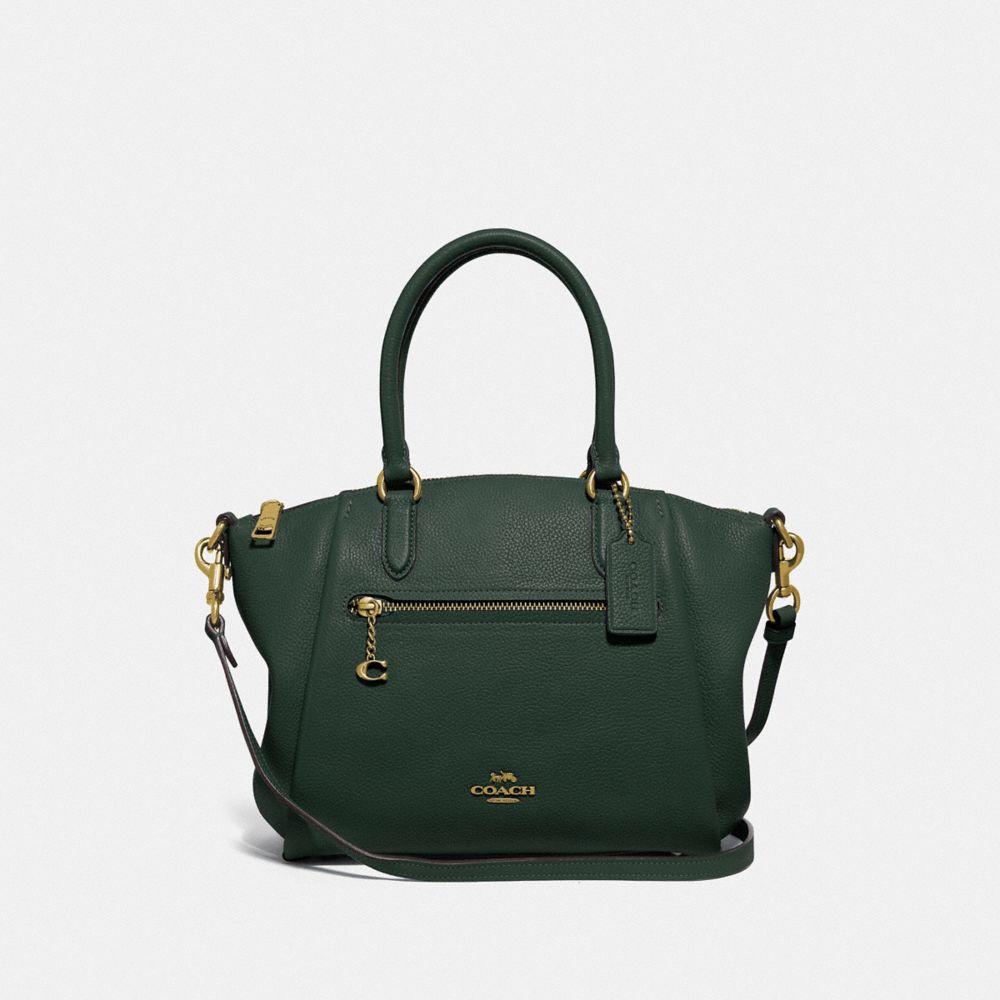 Polished pebble leather| Inside zip and snap pockets| Zip-top closure, fabric lining| Handles with 4 1/2" drop| Outside zip pocket| Detachable strap with 21 1/2" drop for shoulder or crossbody wear| 9 1/2" (L) x 8 1/4" (H) x 4 1/2" (W)Style No. 79316