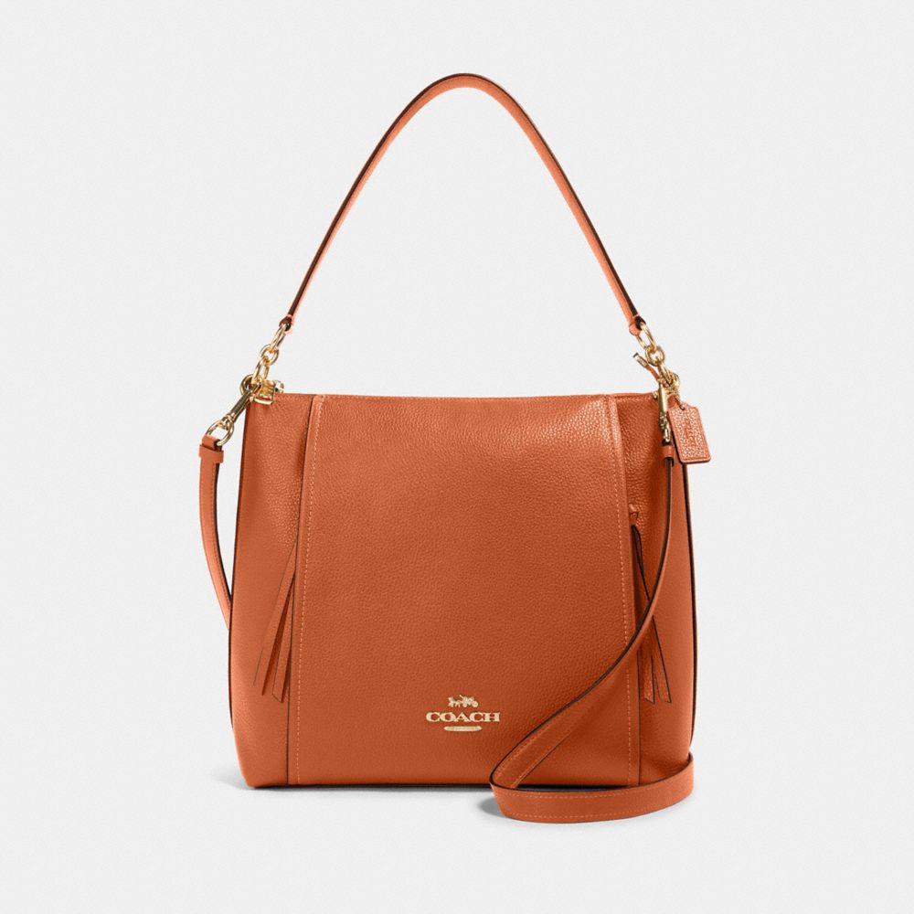 Refined pebble leather| Inside zip pocket| Zip-top closure, fabric lining| Handle with 9" drop| Outside zip pockets| Detachable strap with 20" drop for shoulder or crossbody wear| 12 3/4" (L) x 11 1/4" (H) x 4 1/2" (W)