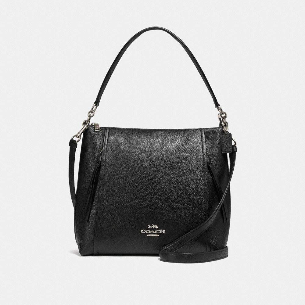 Refined pebble leather| Inside zip pocket| Zip-top closure, fabric lining| Handle with 9" drop| Outside zip pockets| Detachable strap with 20" drop for shoulder or crossbody wear| 12 3/4" (L) x 11 1/4" (H) x 4 1/2" (W)