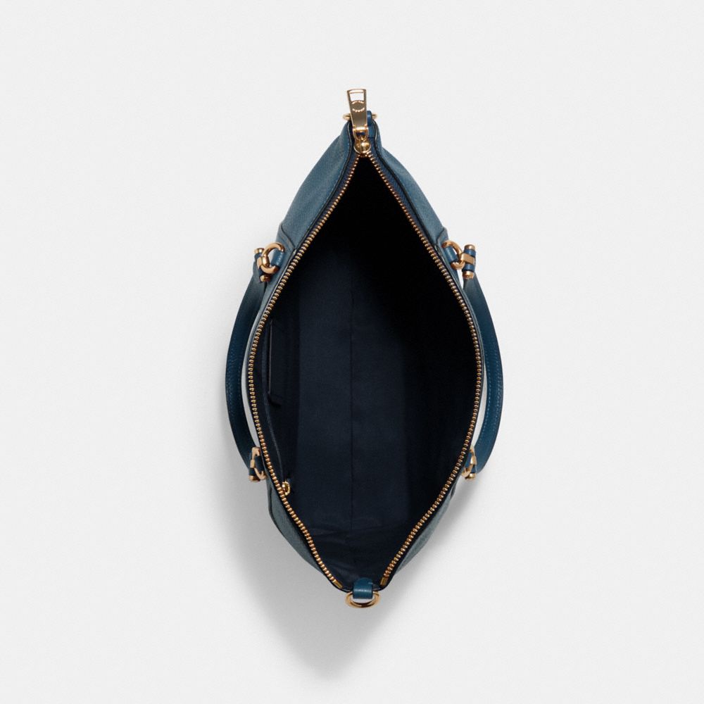 Refined pebble leather| Inside zip pocket| Zip-top closure, fabric lining| Handles with 5" drop| Outside zip pocket| Detachable strap with 21" drop for shoulder or crossbody wear| 10 1/2" (L) x 8 3/4" (H) x 3 3/4" (W)