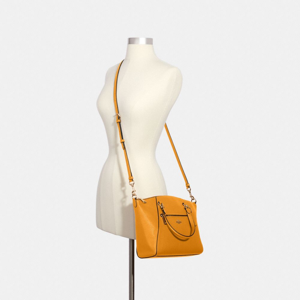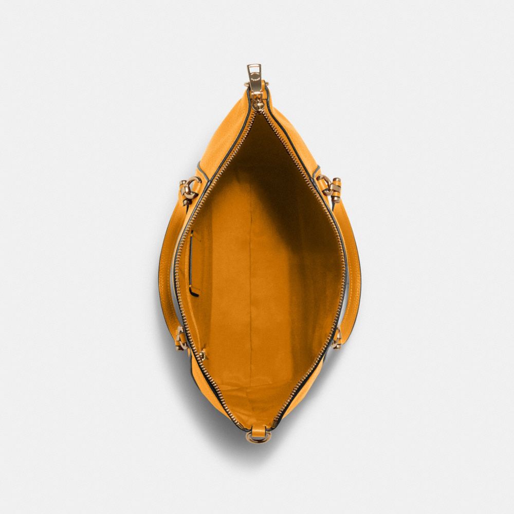 Refined pebble leather| Inside zip pocket| Zip-top closure, fabric lining| Handles with 5" drop| Outside zip pocket| Detachable strap with 21" drop for shoulder or crossbody wear| 10 1/2" (L) x 8 3/4" (H) x 3 3/4" (W)