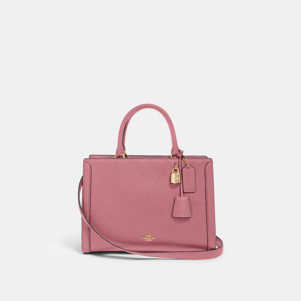 Refined pebble leather| Inside multifunction pockets| Zip closure, fabric lining| Handles with 4 1/4" drop| Outside open pocket| Detachable strap with 21 1/4" drop for shoulder or crossbody wear| 11 1/2" (L) x 8" (H) x 5 1/4" (W)