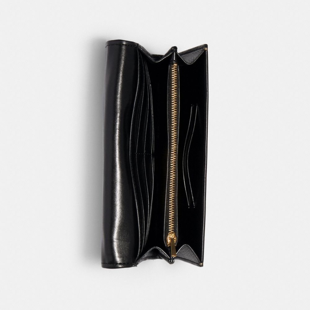 Signature coated canvas and refined pebble leather| Ten credit card slots| Full-length bill compartment| Inside zip compartment| Snap closure, fabric lining| Detachable wrist strap| Outside slip pocket| Detachable long strap with 22" drop for shoulder or crossbody wear| 8" (L) x 5" (H) x 3/4" (W)
