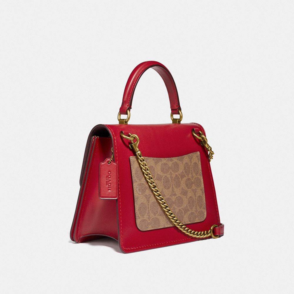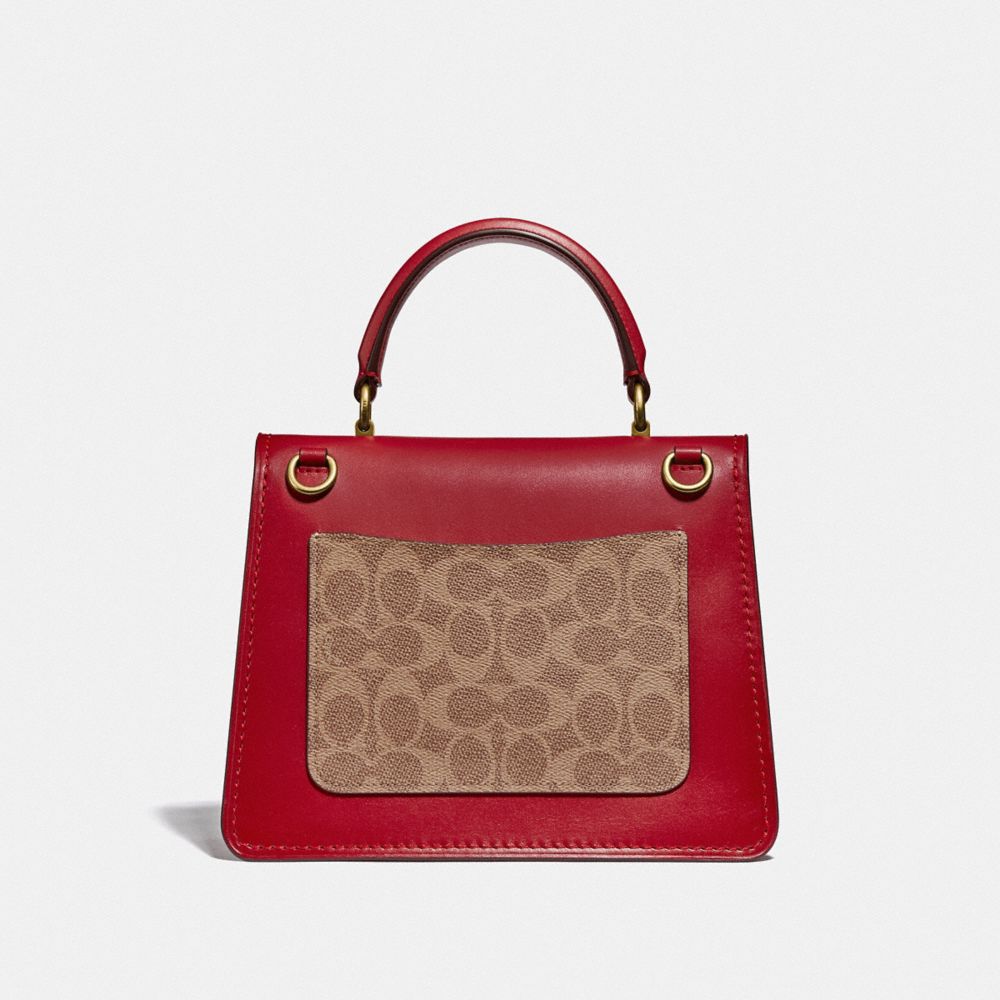 Signature coated canvas and refined calf leather| Inside zip and multifunction pockets| Turnlock closure, fabric lining| Top handle with 3 1/2" drop| Outside slip pocket| Detachable strap with 21 1/2" drop for shoulder or crossbody wear| Instantly change the look of your bag with an interchangeable strap.| 9" (L) x 7" (H) x 4" (W) | Also available in other sizes