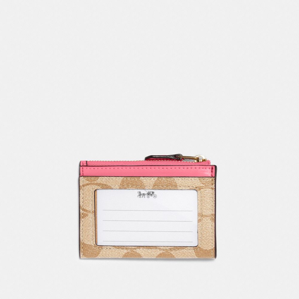Signature coated canvas and smooth leather| Two credit card slots| ID window| Zip-top closure, fabric lining| Attached split key ring| 4 1/4" (L) x 3" (H) x 1/2" (W)