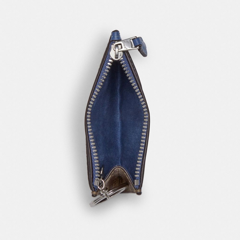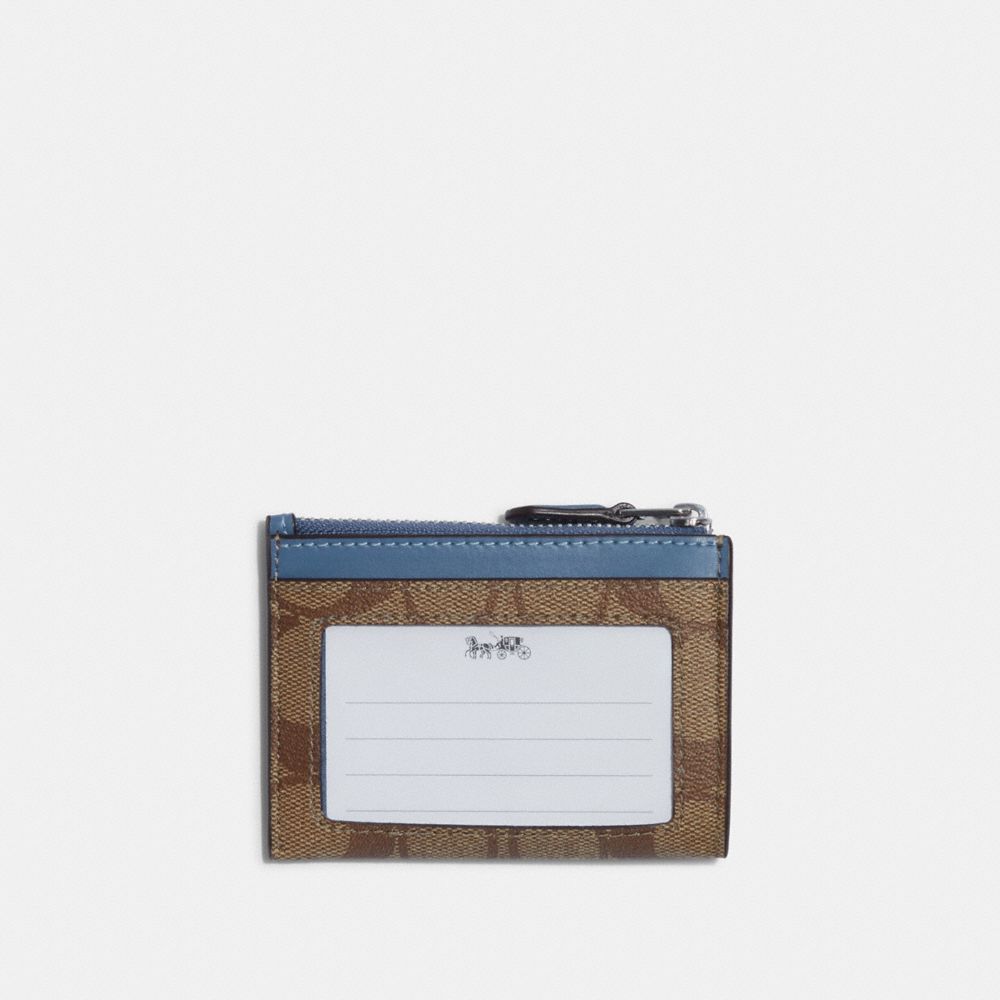 Signature coated canvas and smooth leather| Two credit card slots| ID window| Zip-top closure, fabric lining| Attached split key ring| 4 1/4" (L) x 3" (H) x 1/2" (W)Style No. 88208