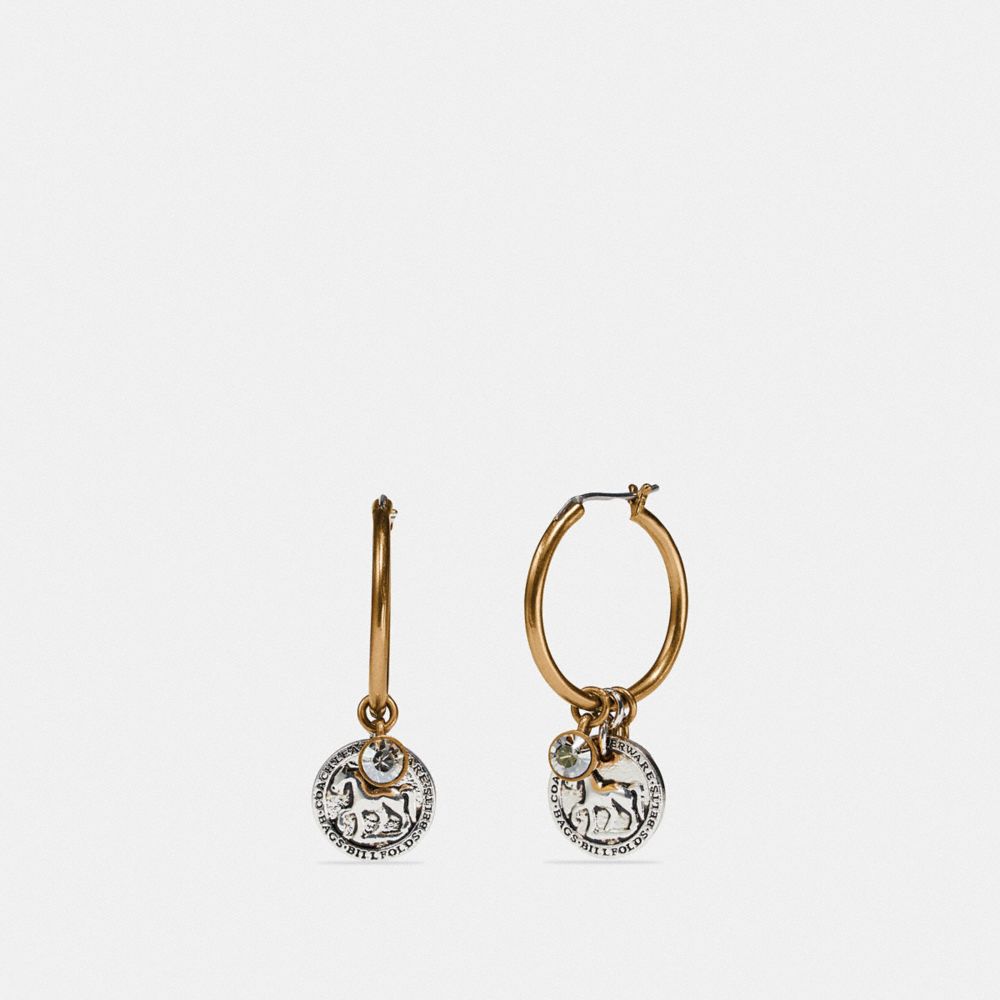 HORSE AND CARRIAGE COIN HOOP EARRINGS