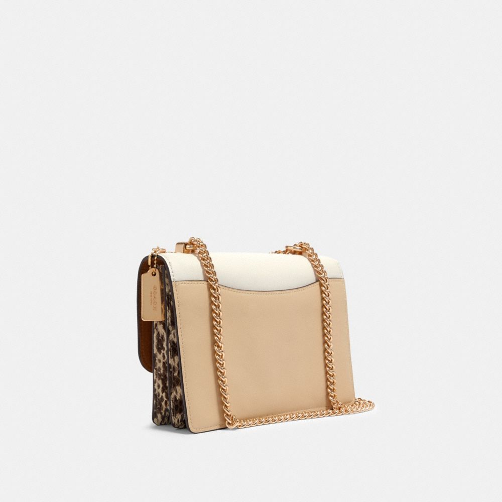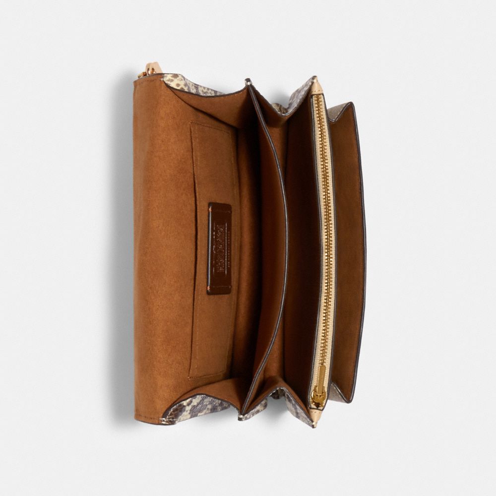 Smooth leather, Signature coated canvas and snake-embossed leather| Inside zip and multifunction pockets| Snap closure, fabric lining| Strap with 22" drop doubles up for three ways to wear: short or long on the shoulder or crossbody style| 8 1/2" (L) x 6 1/4" (H) x 2 3/4" (W)