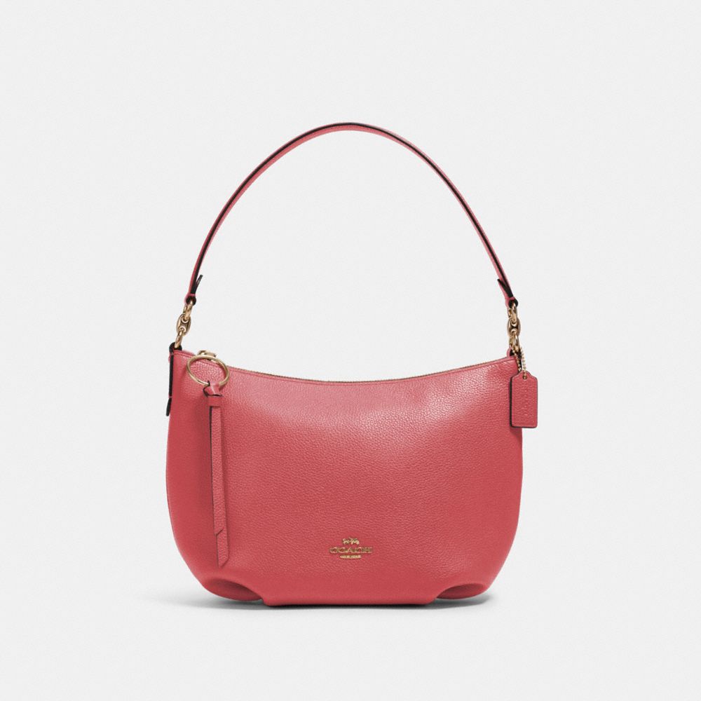 Refined pebble leather| Inside zip pocket| Zip-top closure, fabric lining| Handle with 9 1/2" drop| Outside zip pocket| Detachable strap with 21 1/2" drop for shoulder or crossbody wear| 10 3/4" (L) x 7 3/4" (H) x 4 1/4" (W)
