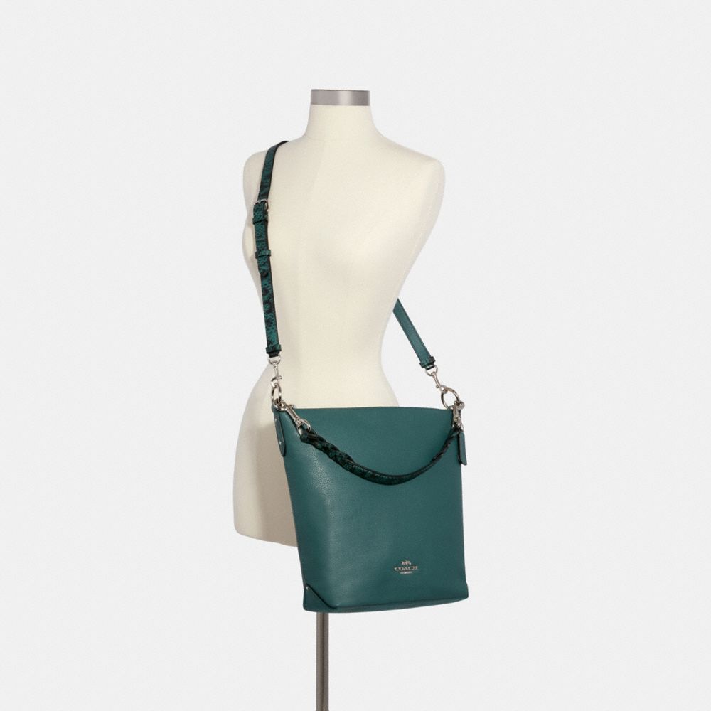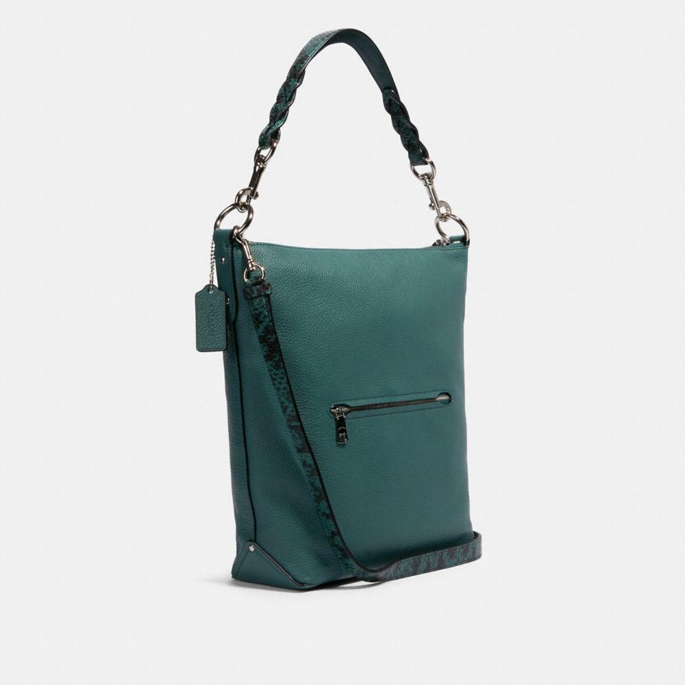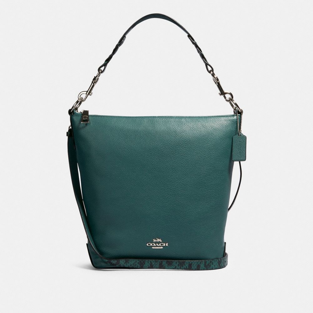 Refined pebble leather and snake-embossed leather| Inside multifunction pocket| Zip-top closure, fabric lining| Handle with 12 3/4" drop| Detachable strap with 20 1/2" drop for shoulder or crossbody wear| 9 3/4" (L) x 12" (H) x 4" (W)