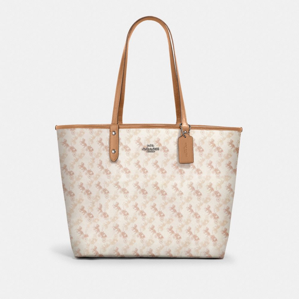 REVERSIBLE CITY TOTE WITH HORSE AND CARRIAGE PRINT
