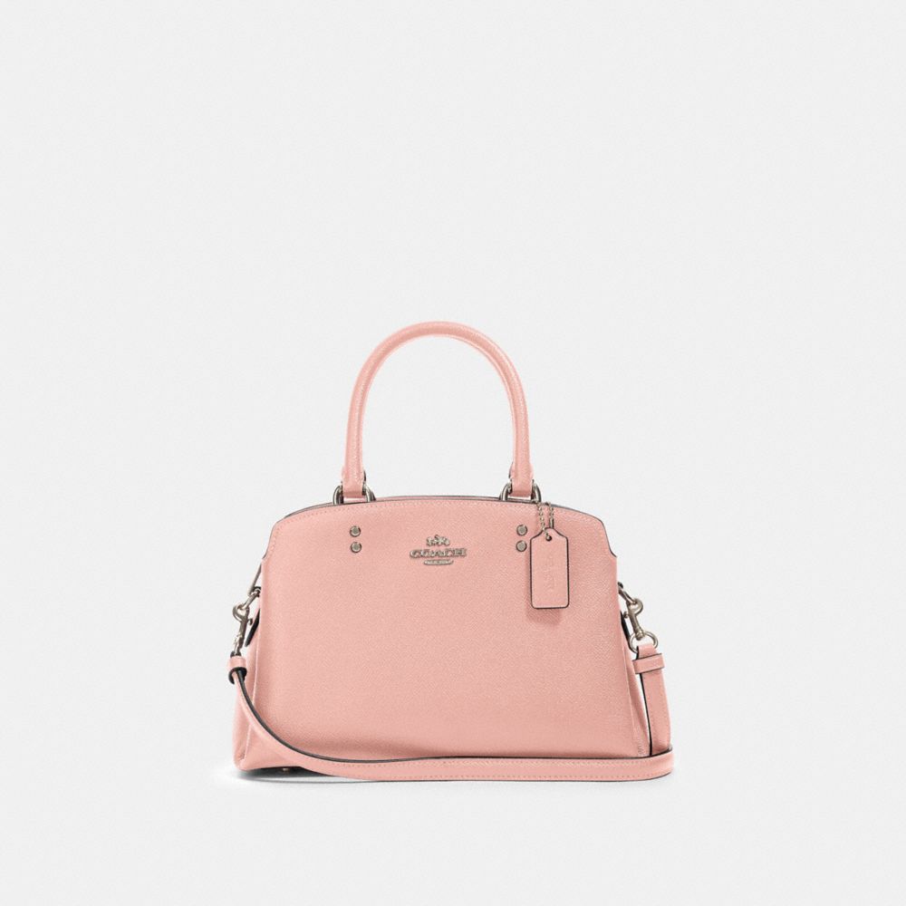 Crossgrain leather| Center zip compartment| Snap closure, fabric lining| Handles with 4 1/4" drop| Outside open pocket| Detachable strap with 21 1/2" drop for shoulder or crossbody wear| 10 1/4" (L) x 6 3/4" (H) x 4 1/4" (W)