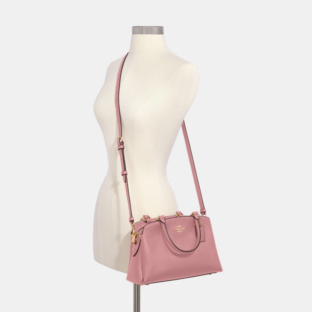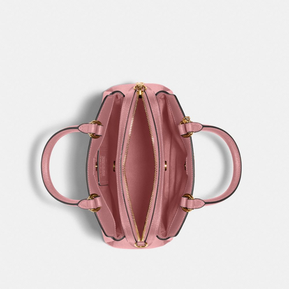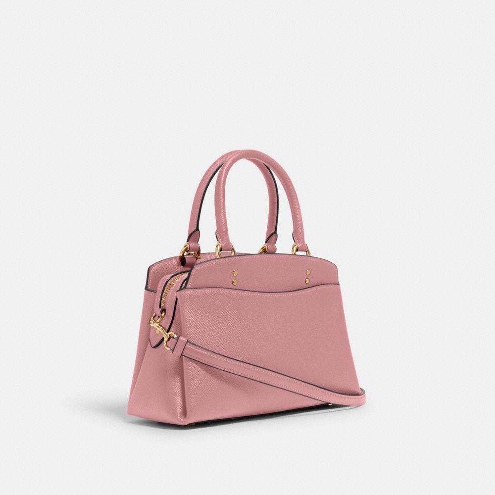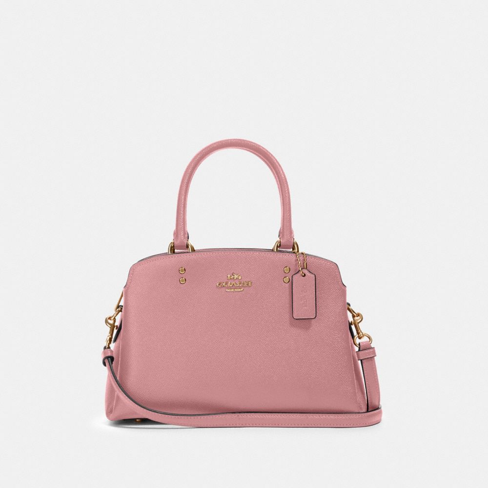 Crossgrain leather| Center zip compartment| Snap closure, fabric lining| Handles with 4 1/4" drop| Outside open pocket| Detachable strap with 21 1/2" drop for shoulder or crossbody wear| 10 1/4" (L) x 6 3/4" (H) x 4 1/4" (W)Style No. 91146