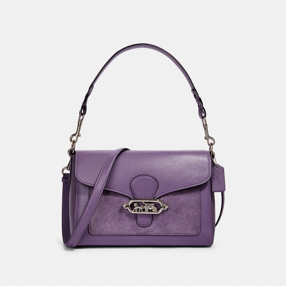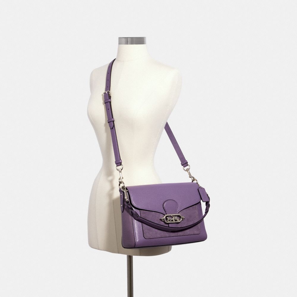 Refined pebble leather, suede and buffalo-embossed leather| Inside multifunction pockets| Magnetic snap closure, fabric lining| Top handle with 8 1/2" drop| Outside zip pocket| Detachable strap with 18 1/2" drop for shoulder or crossbody wear| 11 1/2" (L) x 7 3/4" (H) x 3 1/2" (W)
