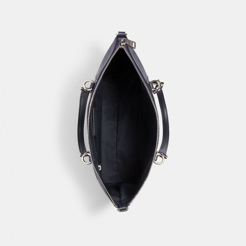 Signature coated canvas and smooth leather| Inside zip pocket| Zip-top closure, fabric lining| Handles with 5" drop| Outside zip pocket| Detachable strap with 21" drop for shoulder or crossbody wear| 10 1/2" (L) x 8 3/4" (H) x 3 3/4" (W)