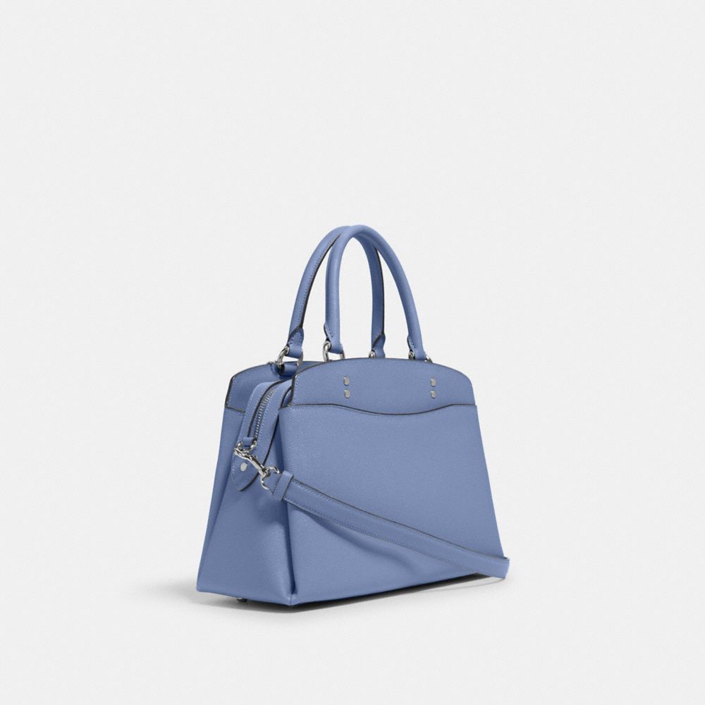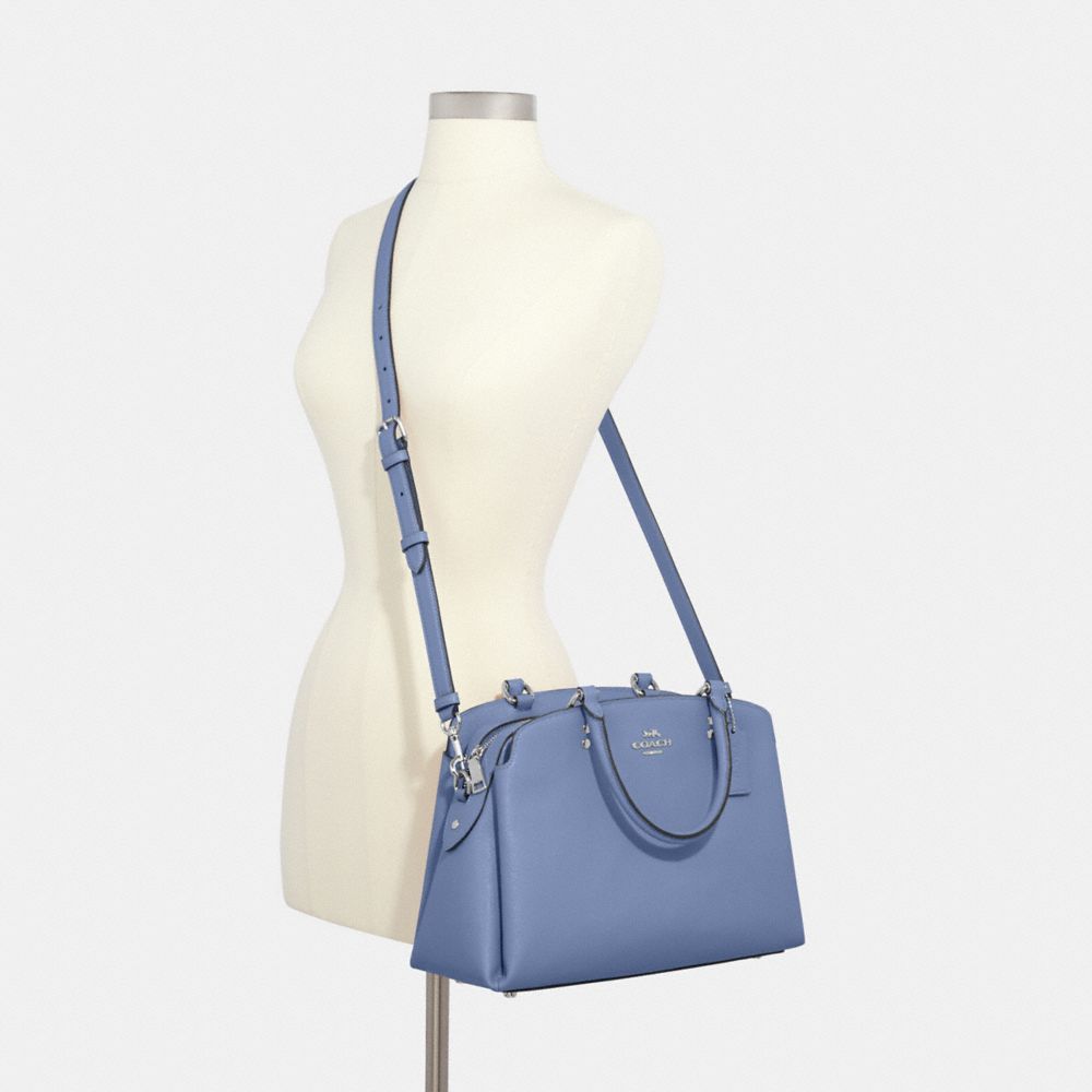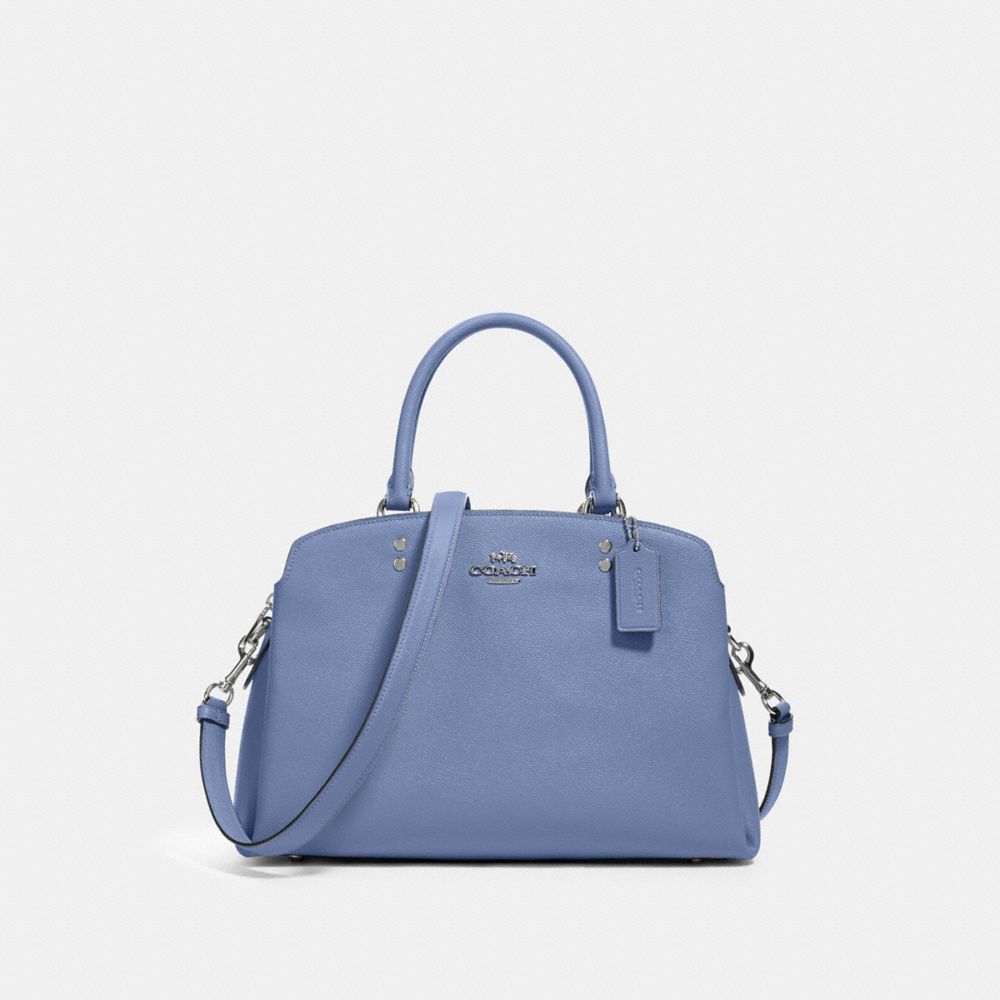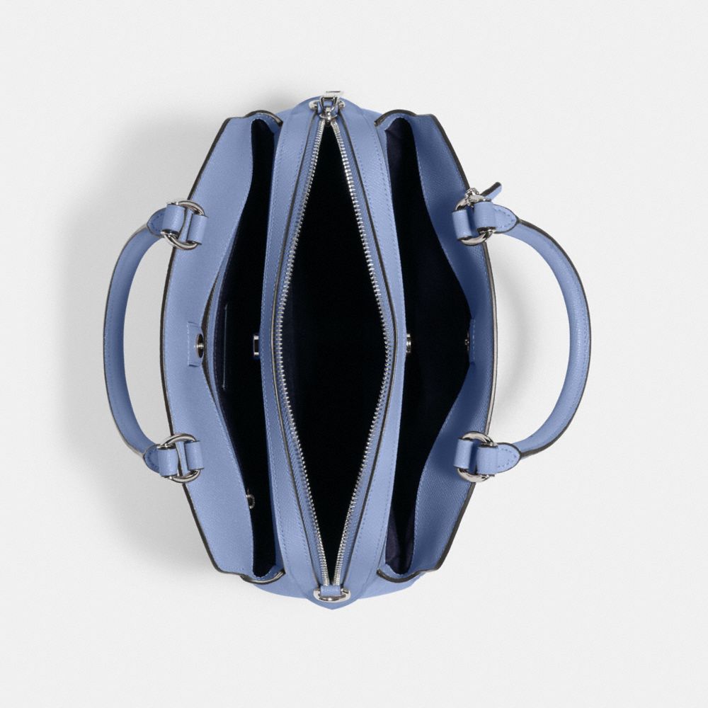 Crossgrain leather| Inside zip and multifunction pockets| Center zip compartment| Snap closure, fabric lining| Handles with 4 3/4" drop| Outside open pocket| Detachable strap with 20" drop for shoulder or crossbody wear| 12 3/4" (L) x 8 3/4" (H) x 5 1/4" (W)