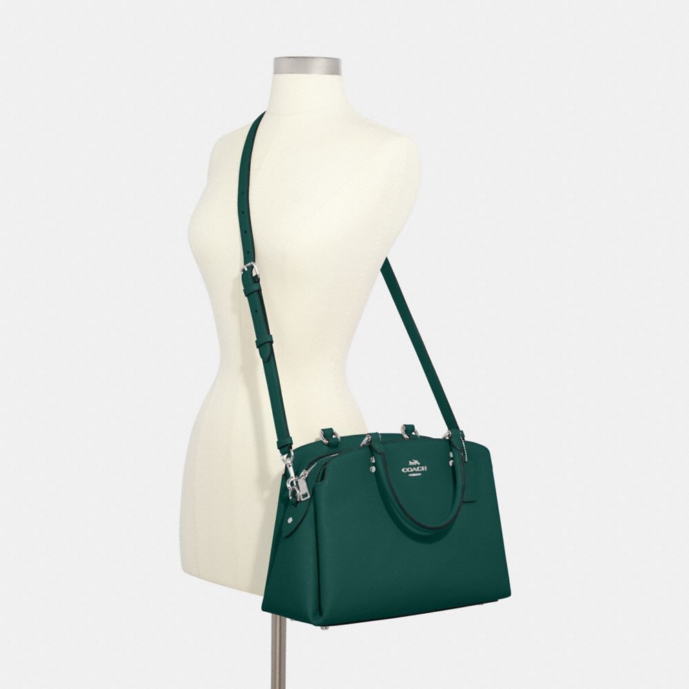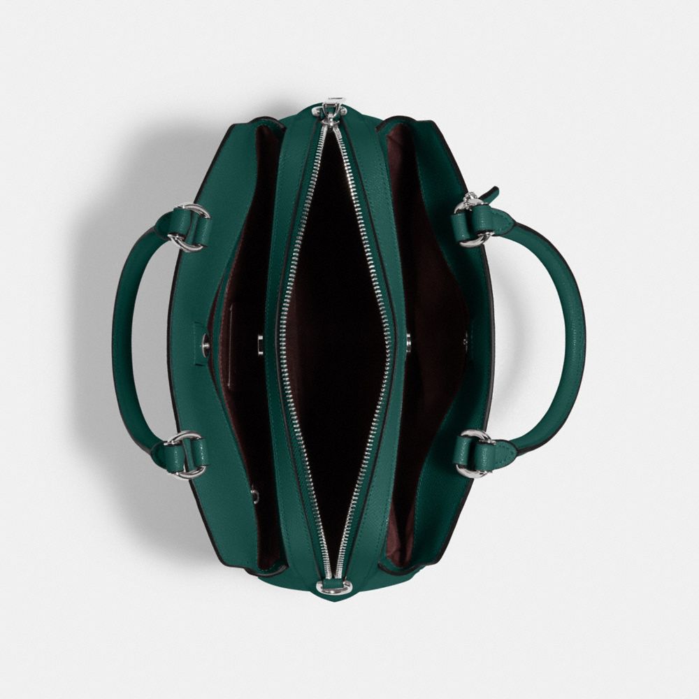Crossgrain leather| Inside zip and multifunction pockets| Center zip compartment| Snap closure, fabric lining| Handles with 4 3/4" drop| Outside open pocket| Detachable strap with 20" drop for shoulder or crossbody wear| 12 3/4" (L) x 8 3/4" (H) x 5 1/4" (W)Style No. 91493