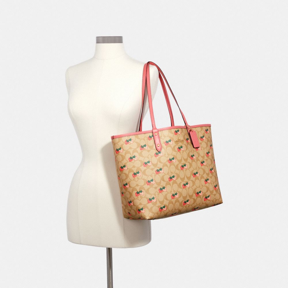 REVERSIBLE CITY TOTE IN SIGNATURE CANVAS WITH STRAWBERRY PRINT