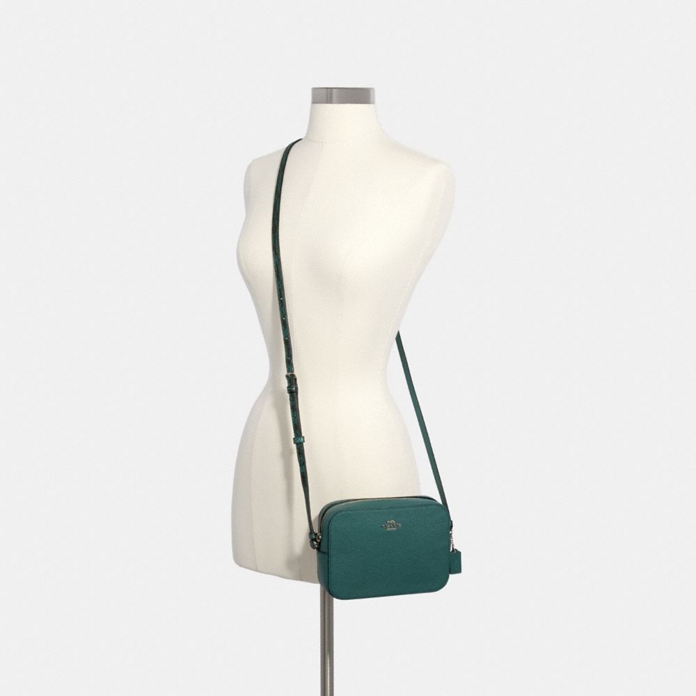 Refined pebble leather with snake-embossed leather details| Two credit card slots| Inside multifunction pocket| Zip closure, fabric lining| Outside open pocket| Adjustable strap with 23" drop for shoulder or crossbody wear| 7 1/4" (L) x 5 1/4" (H) x 2" (H)